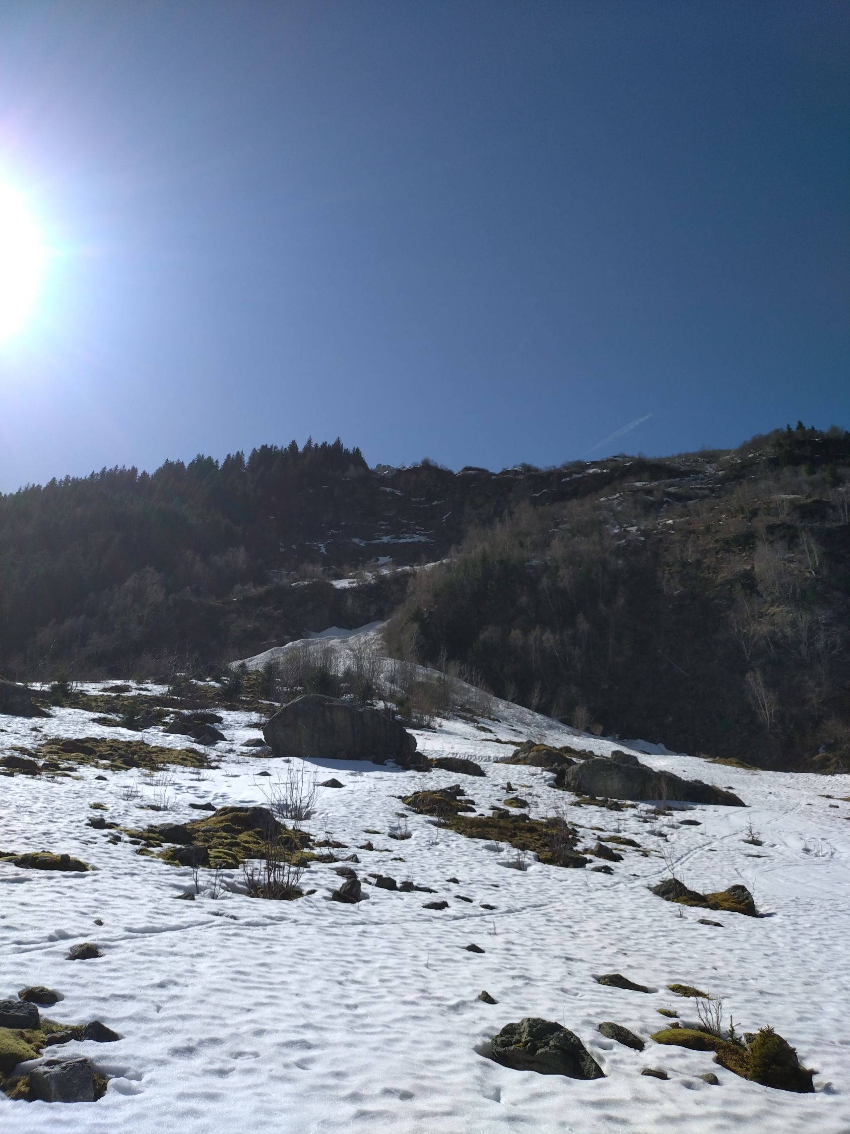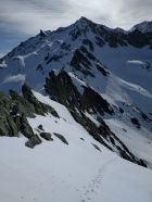 Im Gebiet Wang sind grössere Lawinen abgegangen, welche bis fast in den Talboden vorgestossen sind. Entsprechend hat man im untersten Bereich der Route und bei der Querung auf ca. 1800 m etwas mit dem Lawinenschnee zu kämpfen. Ebenso sollte man nicht zu spät dran sein - wenn die Nassschneelawine kommt, wenn man im untersten Routenteil steht, hat man keine guten Karten.