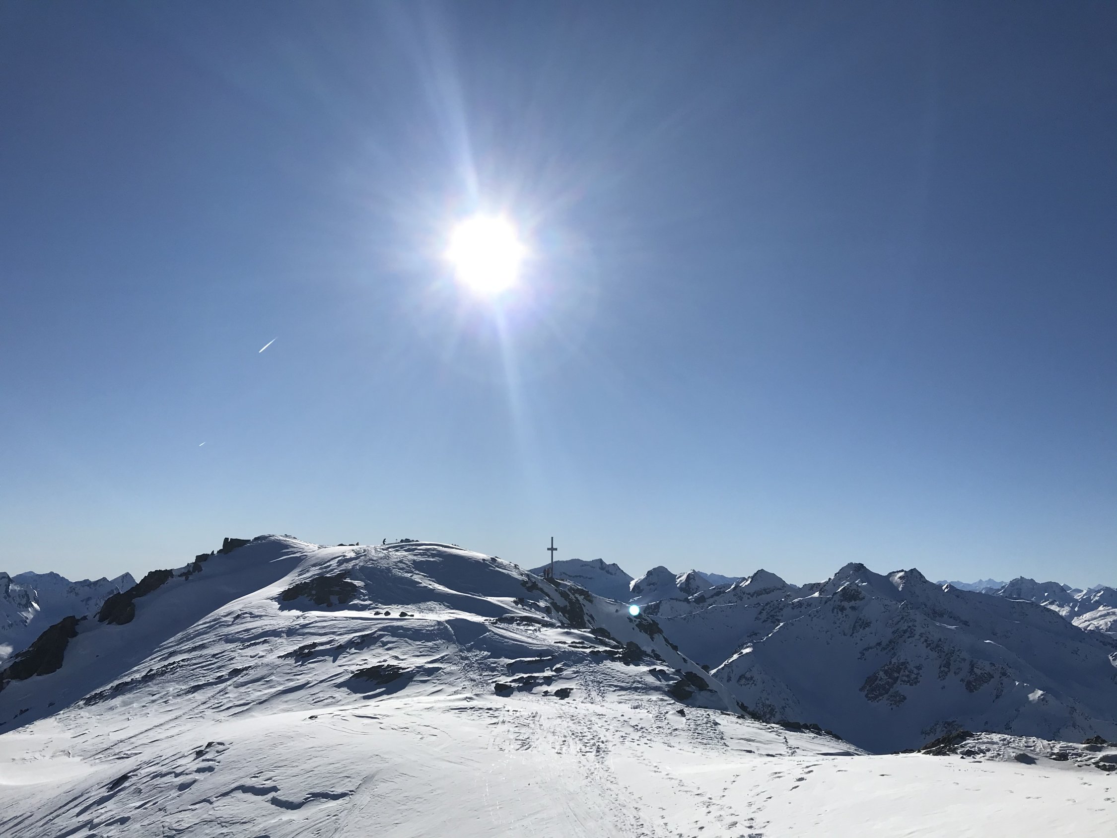 Harte Aufstiegsspur, aber gut zu gehen. Kurzer Fussanstieg ohne Steigeisen möglich.