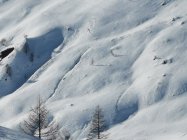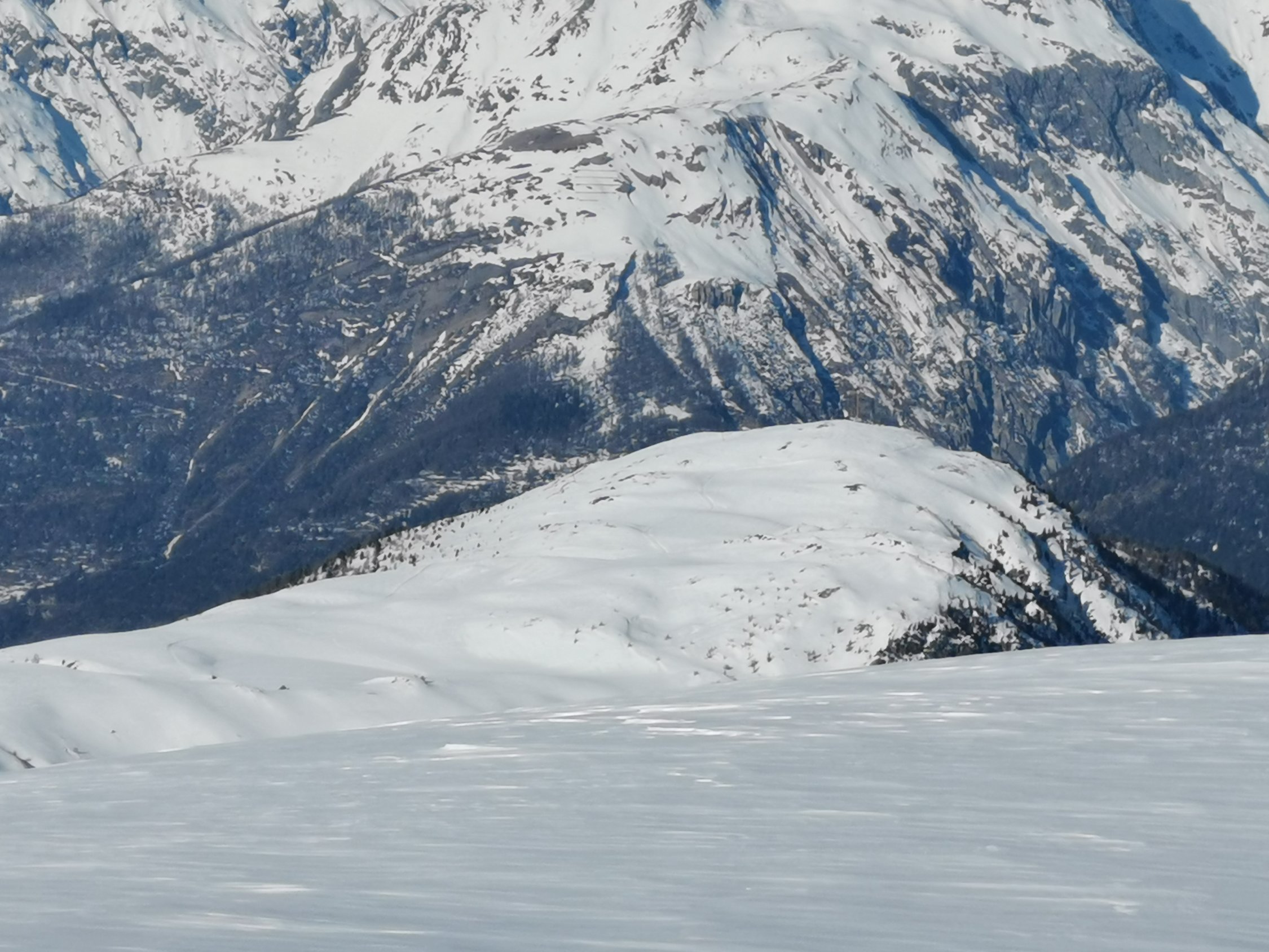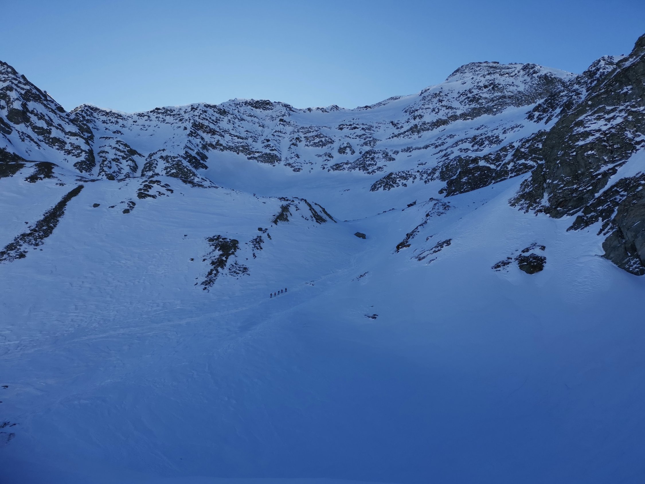 Schnee ist überall hartgepresst und teilweise rutschig, Harsteisen je nach Befindlichkeit im steileren Gelände empfehlenswert.
