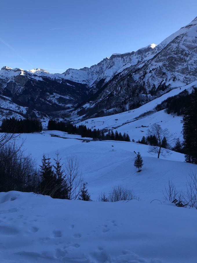 Abfahrt bis ca. 1550MüM je nach Exposition von pulvrig über Piste bis sulzig. Obwohl kalt war 14:00 heute für die Sulzseite schon eher spät.