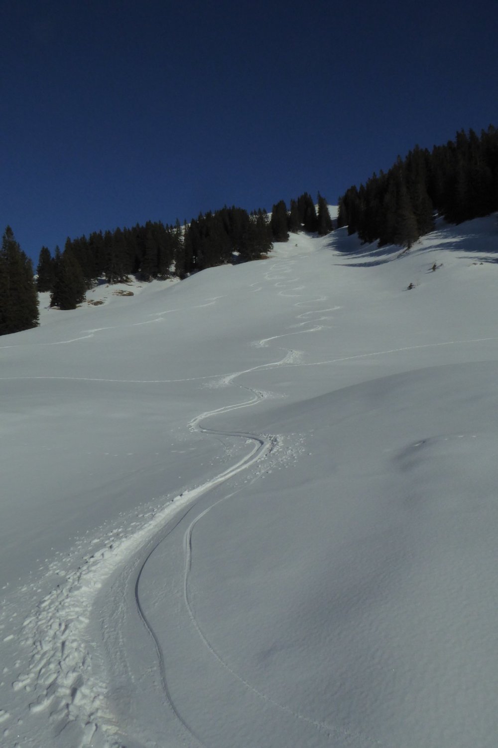 SO-Rinne Überschreitung Gunzesried Säge, Gerstenbrändle, Vorsäß I,II,III, Vord.Wiesle-,Hint.Wiesle-,Gündles Alp. Von dort die Haupt SO-Rinne hoch in Scharte und nach rechts zum Gipfel. Von Scharte SW um VG nach links queren und die SW-Rinne Richtung Vorderen Rindalp abfahren. Weiter auf Sommerweg ins Autal runter.