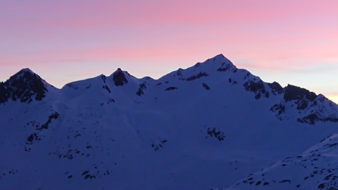 Wir sind von der Rotondohütte am Morgen gestartet. Der Wind und der fehlende Neuschnee haben es nicht leicht gemacht, aber es ging eigentlich ganz gut. Unterhalb der Lücke, wo man den Grat auf die Ostseite überschreitet wirds harzig, selbst mit Harscheisen mühsam in den Spitzkehren. Wir waren heute alleine auf dem Gipfel und sind keiner Menschenseele begegnet, abgesehen vom nicht so tollen Schnee ein herrliches Bergerlebnis, wie wir das gerne haben.