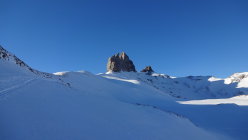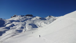 Ausreichend Schnee auf ganzer Route - aber es könnte mehr sein, Hartschnee/Firn und windverpresst