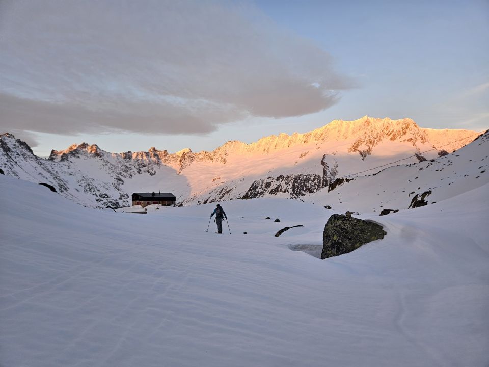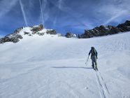 Ab Gwüest noch knapp Schnee um auf die Bergseehütte zu gelangen. Danach genügend Schnee, jedoch die beiden Engpassagen von der Vorder Mur zur Hinter Mur abgeblasen (Blockgelände). Zwei Mal kurz die Skier tragen.