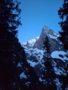 In der Abfahrt gab es alles mögliche an Schneearten, oben je nach expo windgepresster Pulver oder Sulz, im Mittelteil sehr schön zu fahren, ab 2400 dann Nassschnee oder hart je nach expo (die Engstelle in der orografisch linke variante nach dem Dossenbiwak musste ich kurz zu Fuss abklettern).