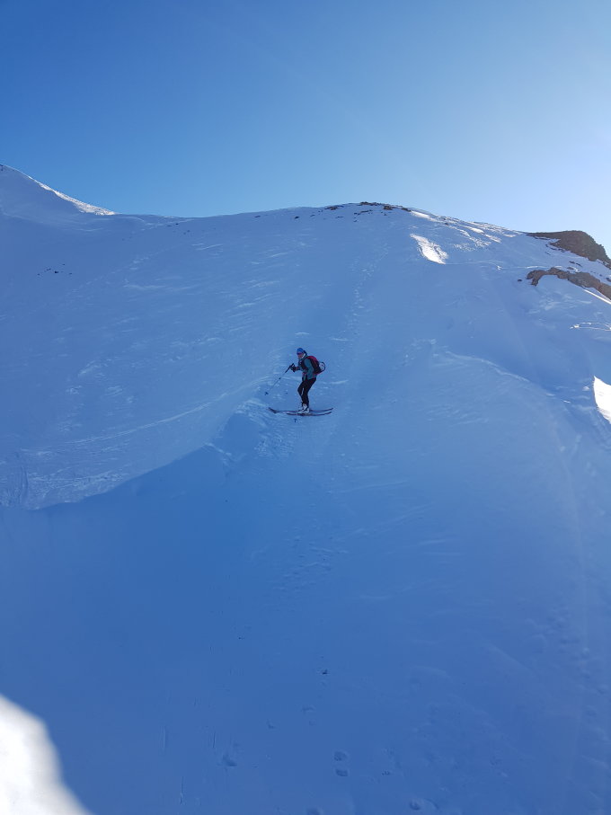 Schnee beim Aufstieg hart bis teilweise leicht eisig. Für Abfahrt hart jedoch gut zum Fahren
