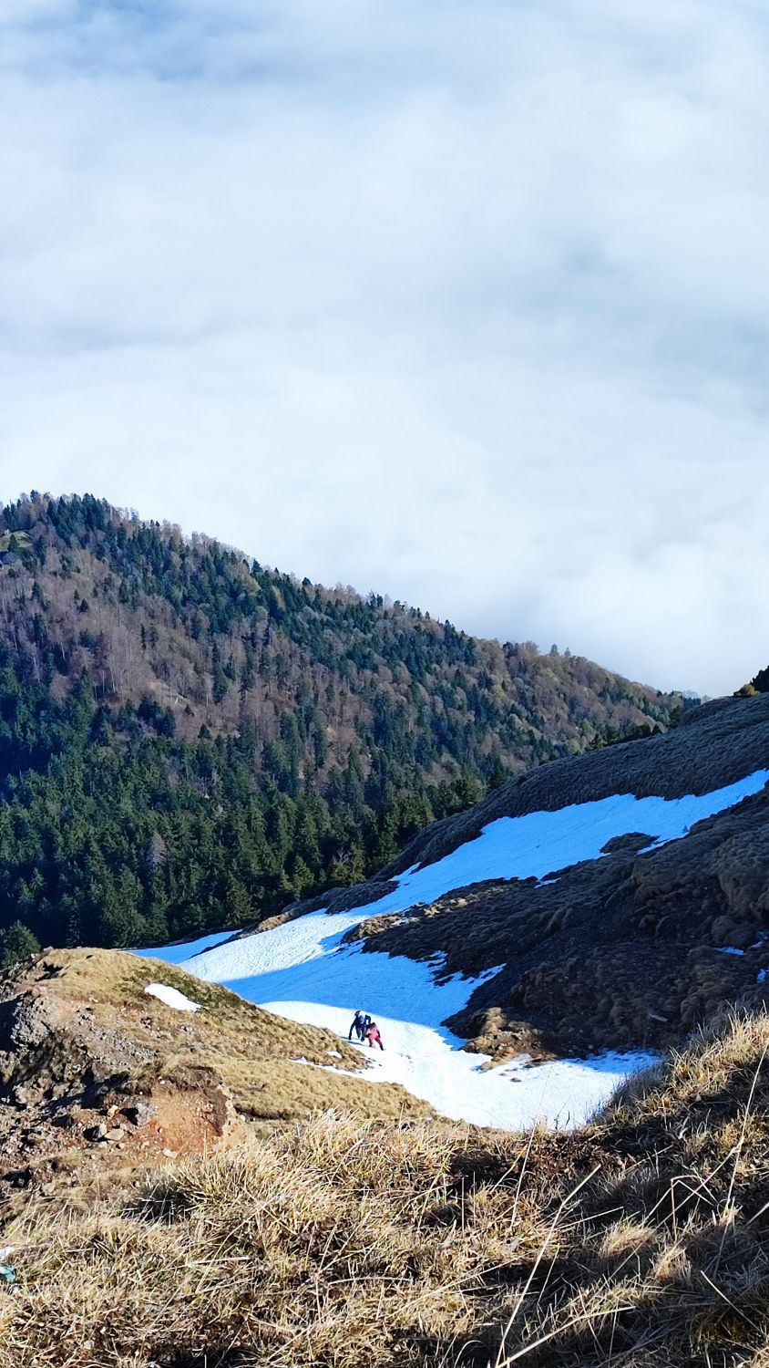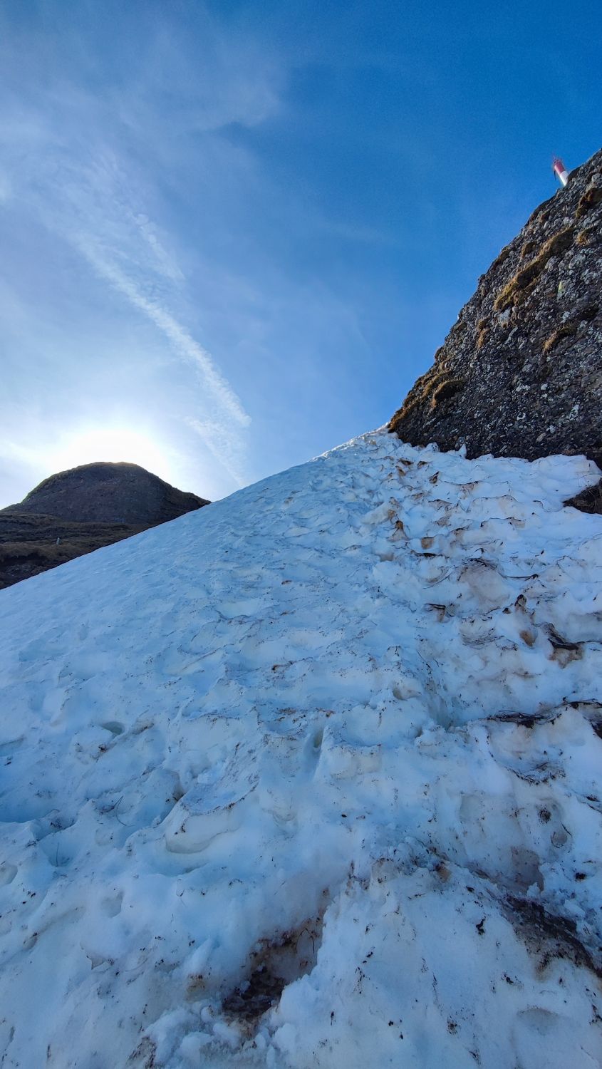Ab Arschbagge noch Schnee, sehr tief aber dank Trittspuren gut machbar.