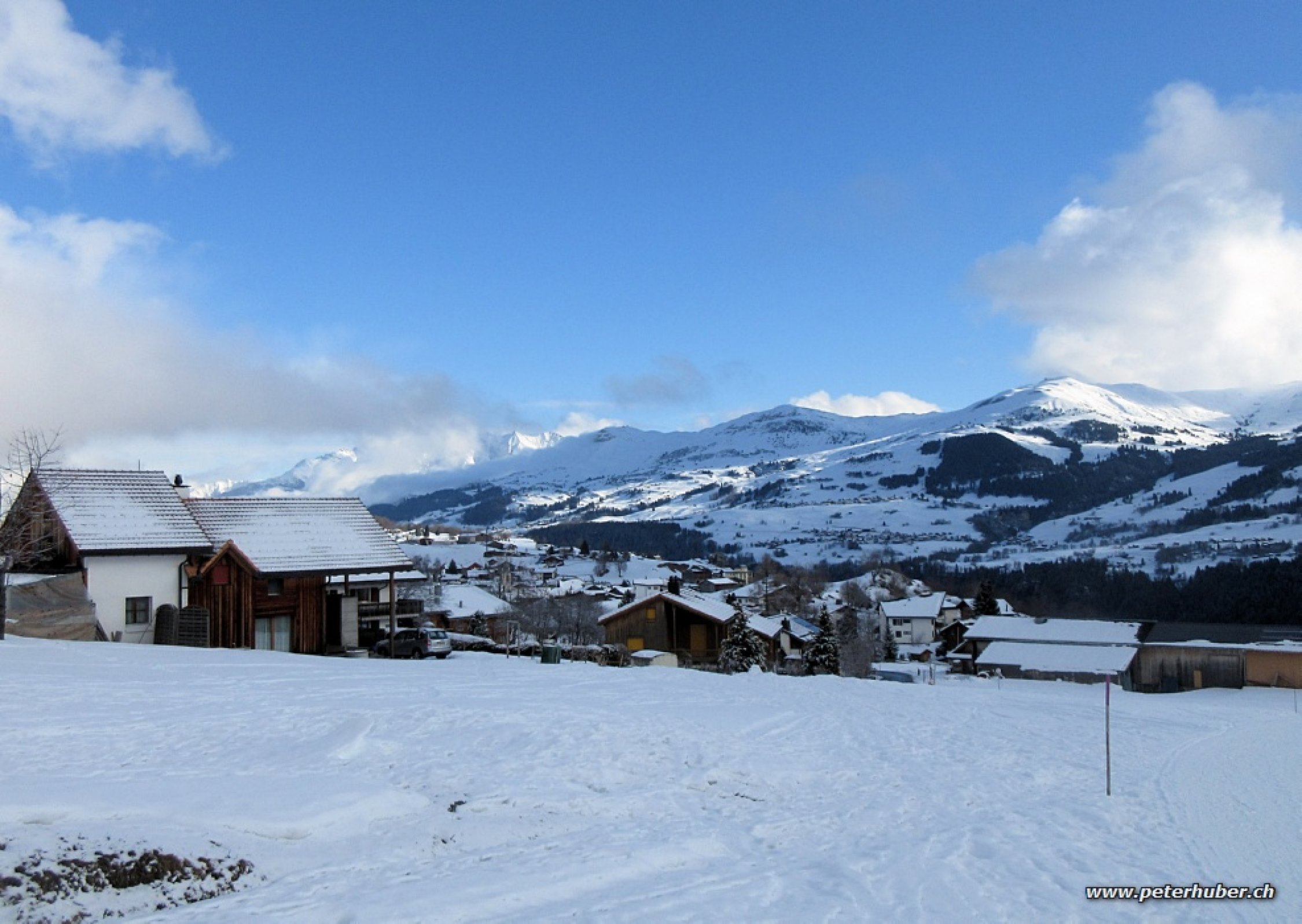 Wider Erwarten wurde es zeitweise sonnig. Es hat in der Nacht im Dorf ca 2 cm, auf 2400 m ca. 30 cm Neuschnee gegeben.