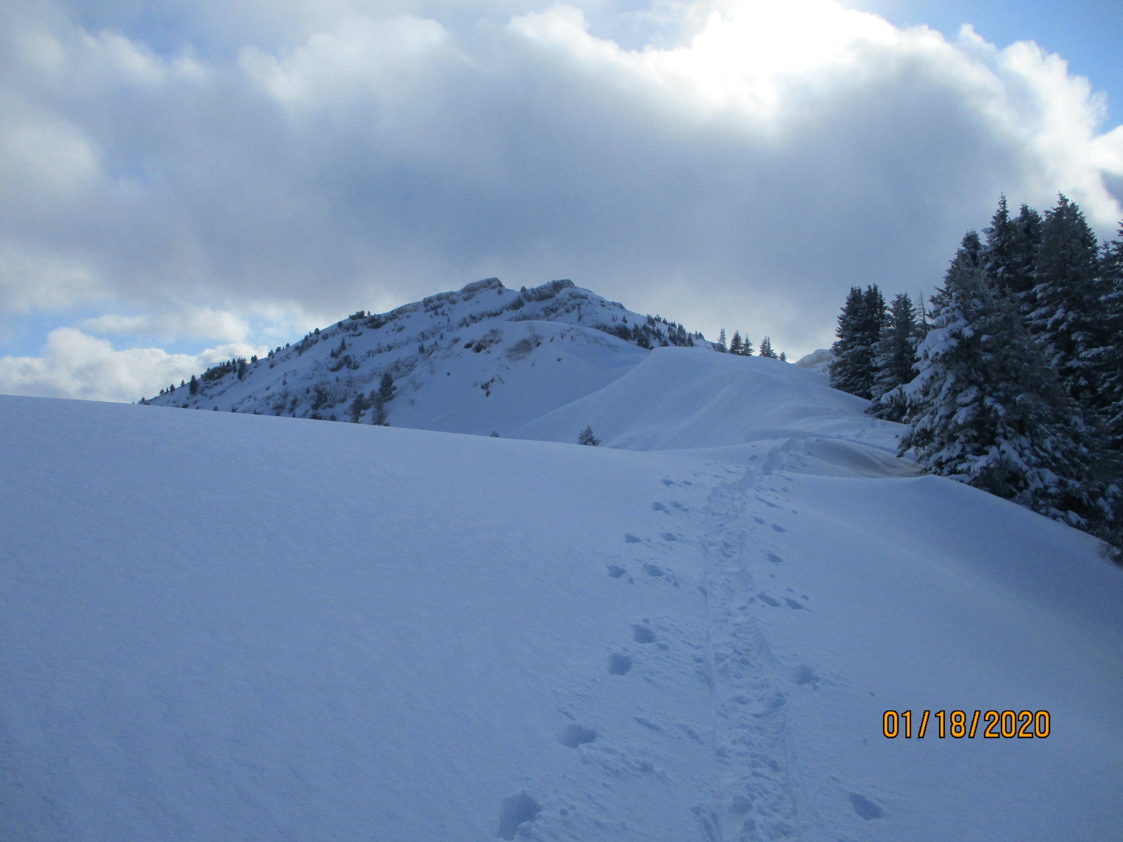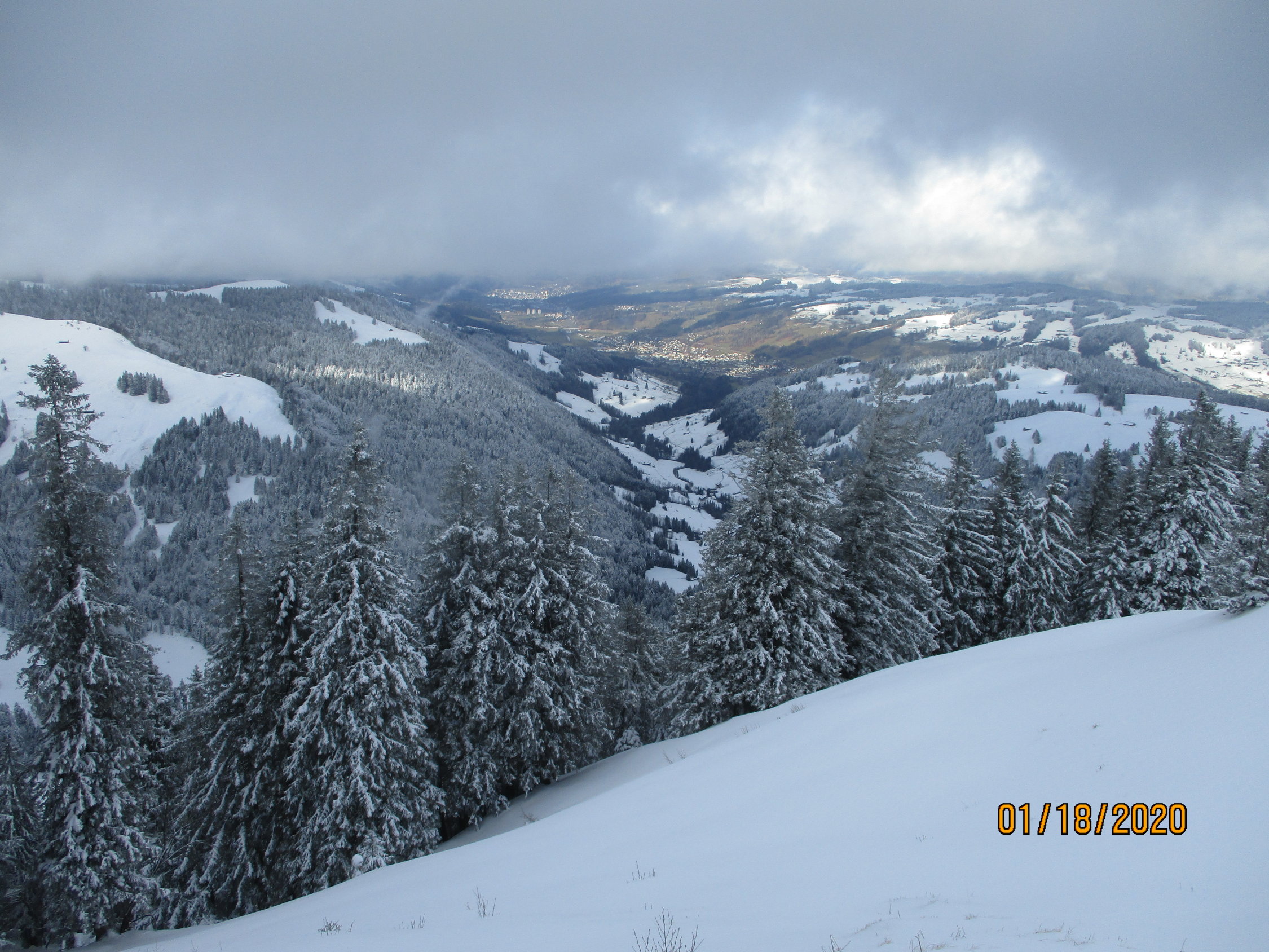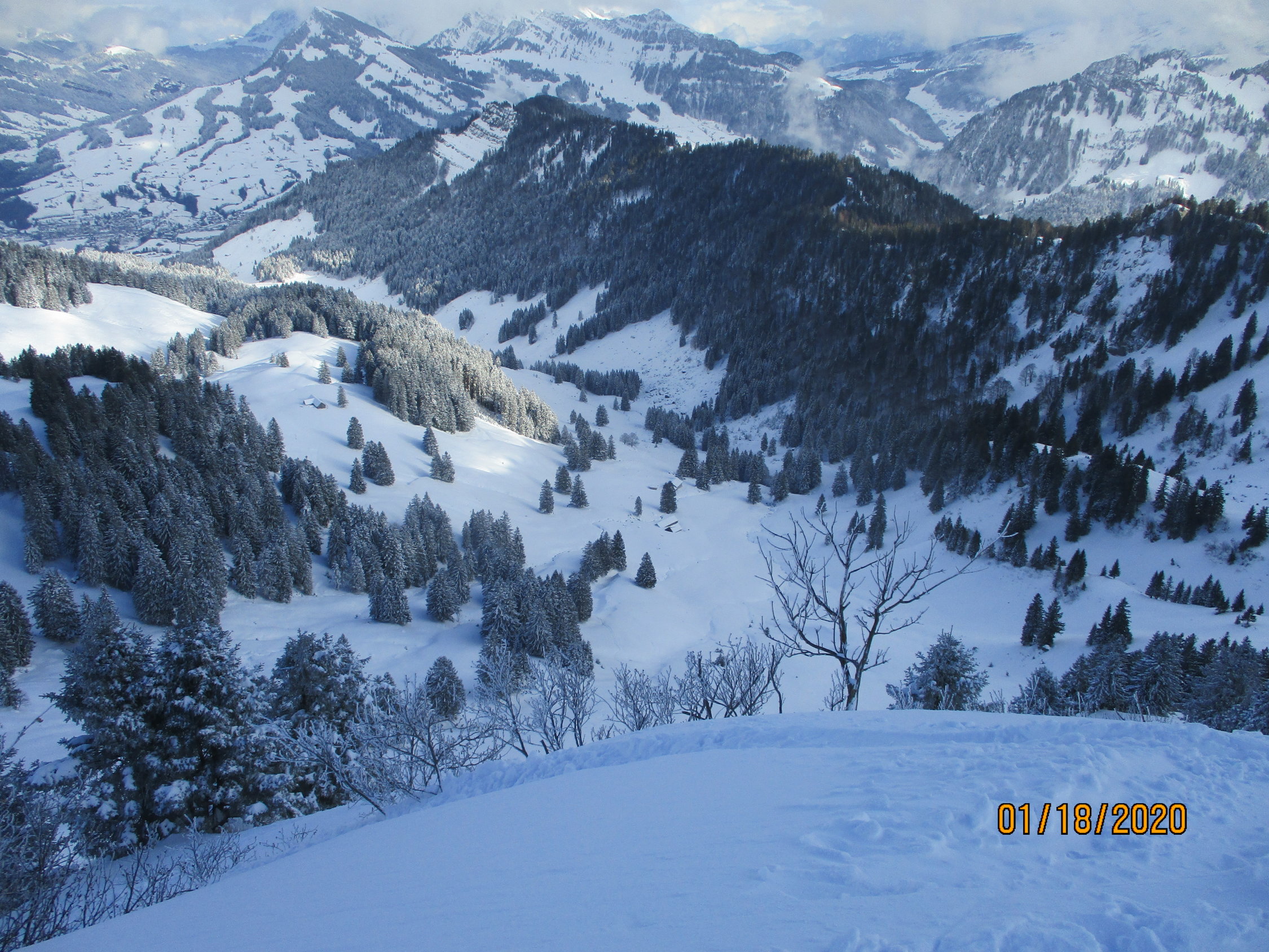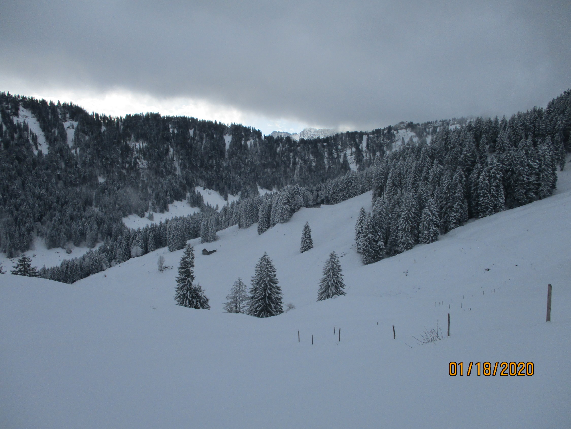 Wetter: zu Beginn Schneefall und schlechte Sicht. Bei der Gelegenheit musste ich zudem noch feststellen, dass mein Kompaß das Zeitliche gesegnet hat. Wie prognostiziert, besserte sich das Wetter im Verlauf der Tour. Es herrschten allerdings konstant diffuse Lichtverhältnisse.