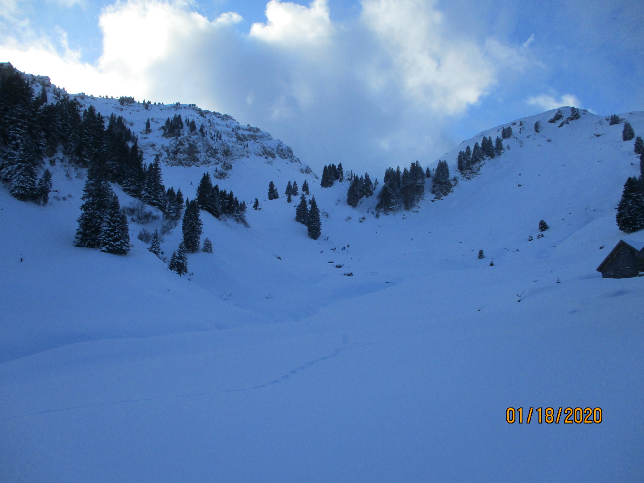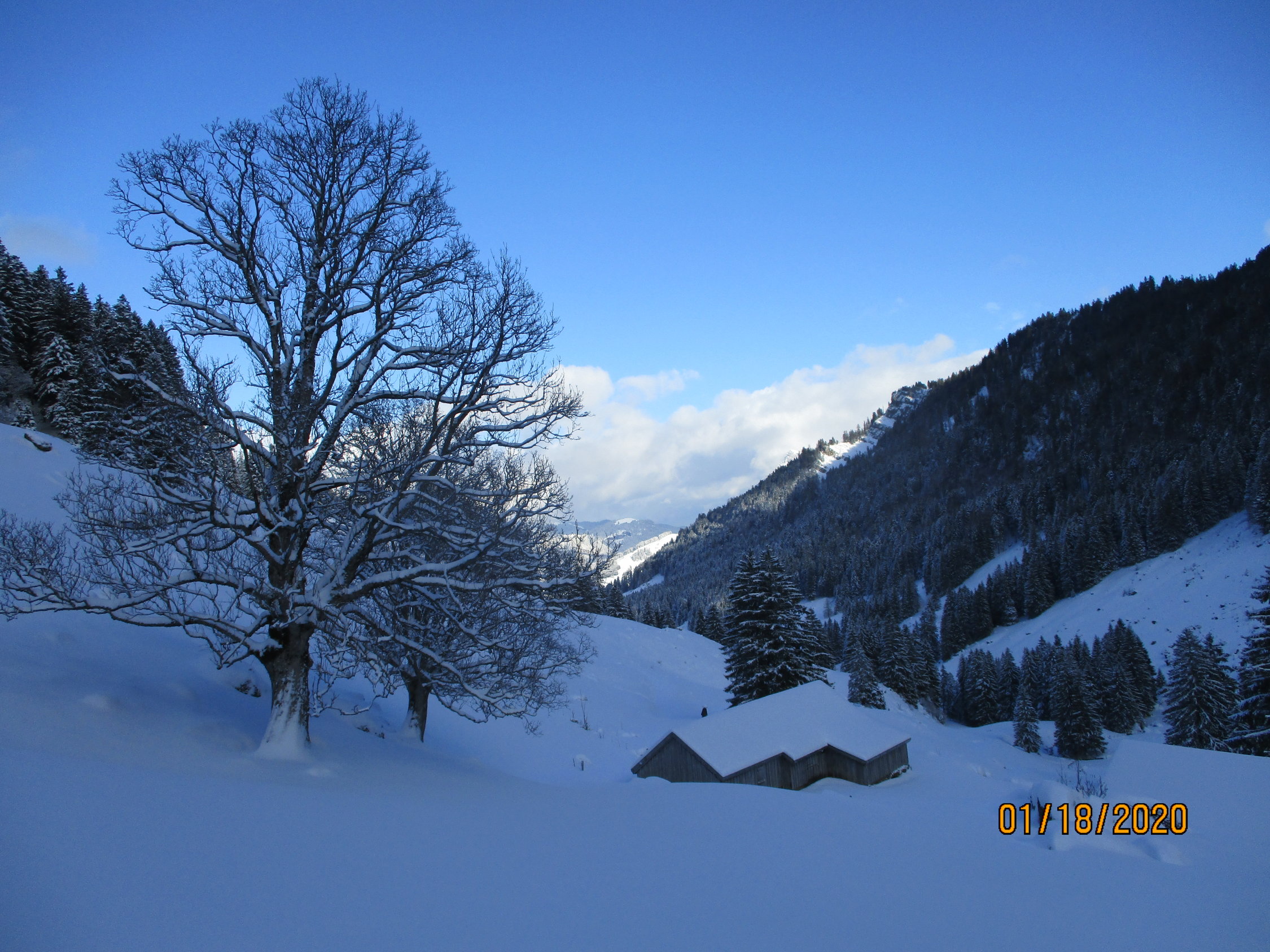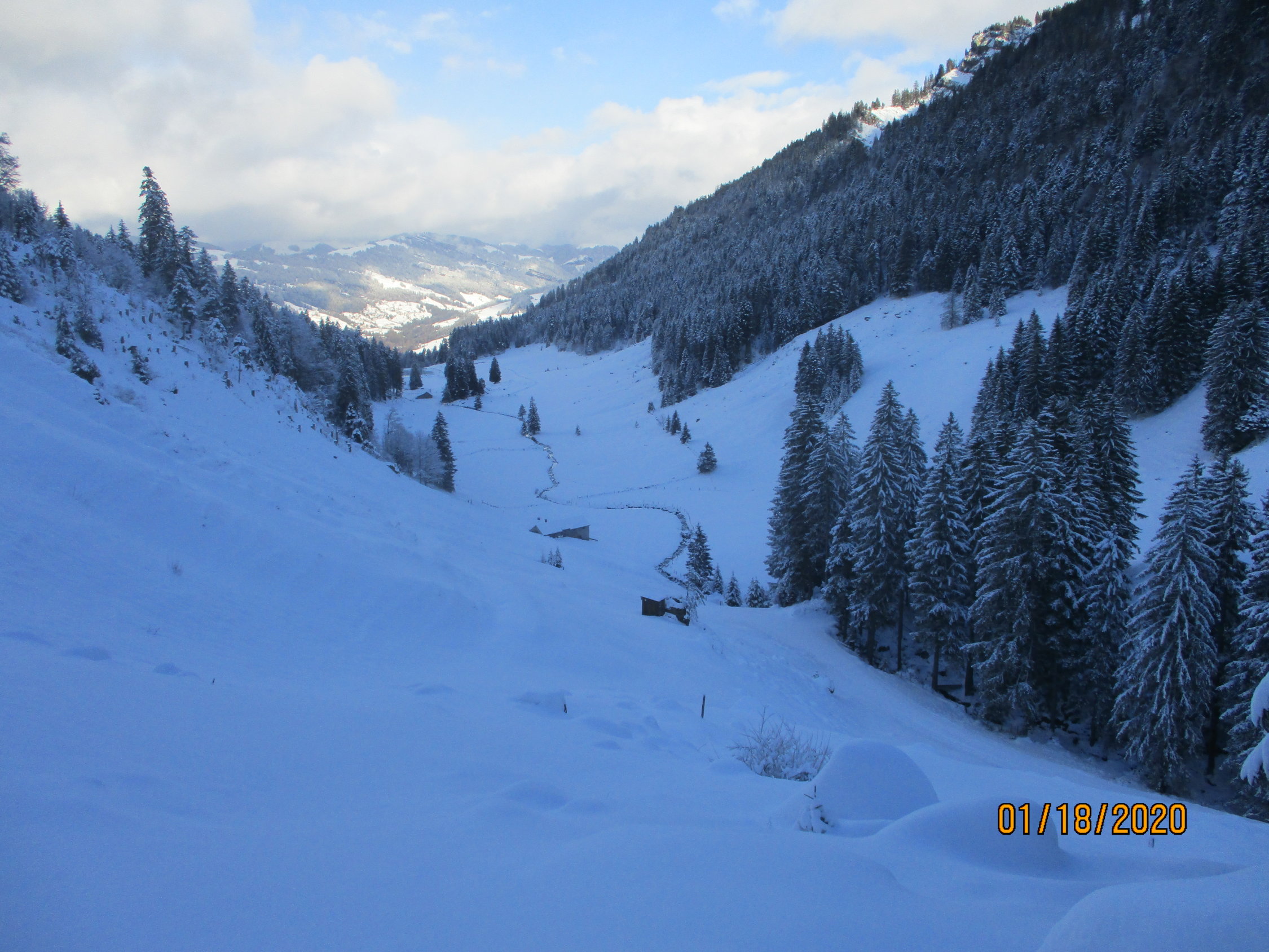 Eigentlich war das Speermürli von mir auserkoren, doch hatte mich die Spurarbeit bis dorthin mehr Zeit gekostet, als mir lieb war. Zudem erfüllte mich der Anblick des kurzen Steilhanges oberhalb von Butzi, über den es auf den SW-Grat des Seermürli hinaufgeht, mit leichtem Unbehagen. Somit Verzicht und Abstieg durchs herrlich stille und tiefwinterliche Iljental. Einsam gings heute allemal zu, hatte ich auf der gesamten Tour doch nur einen Skitourengeher auf dem Weg zum Wannenhüttli des Skiclubs Nesslau getroffen.