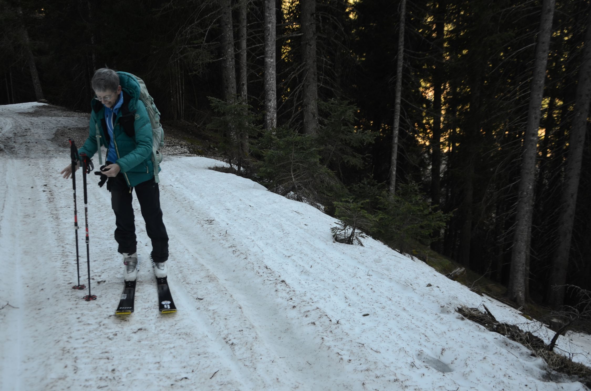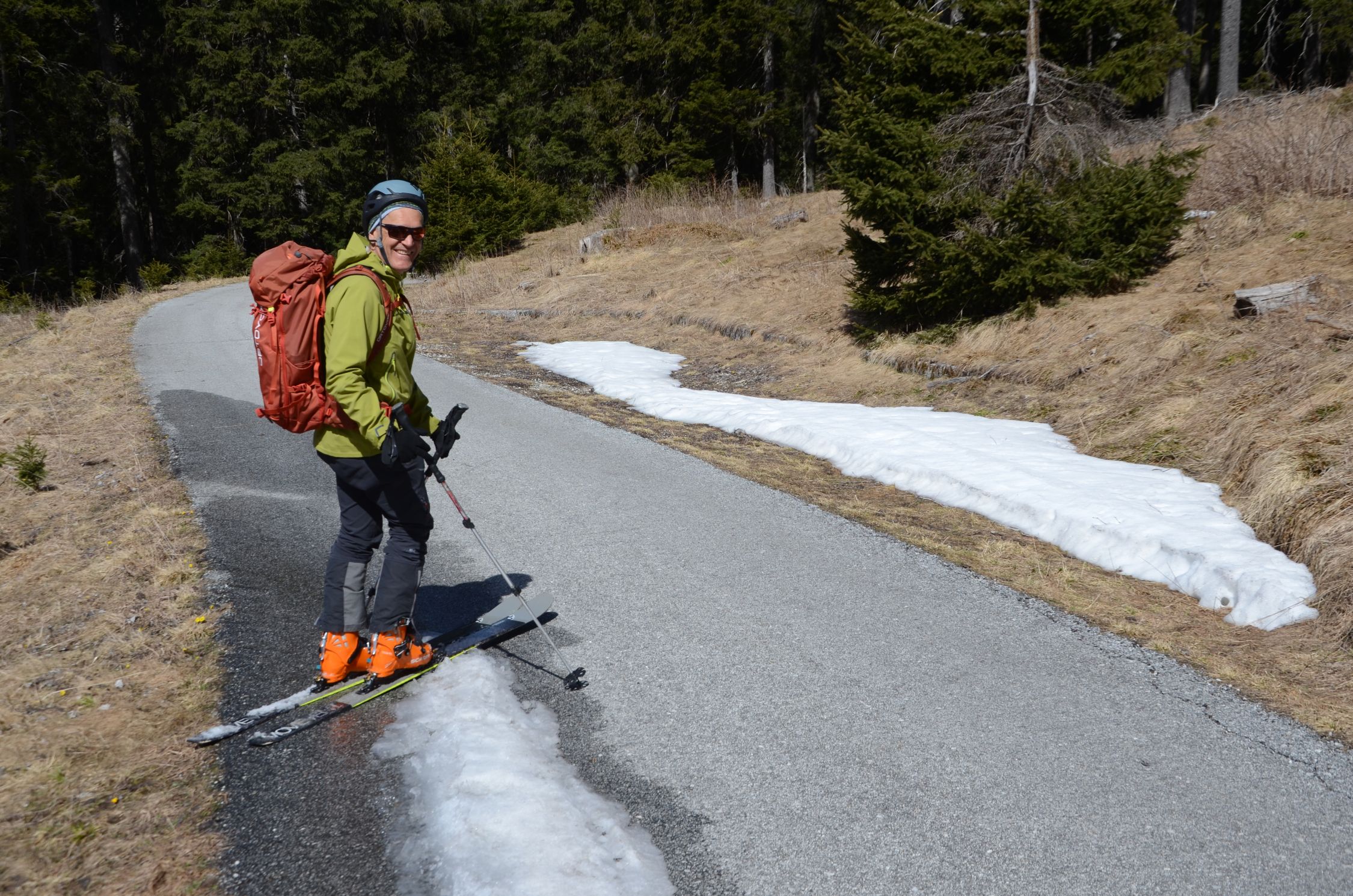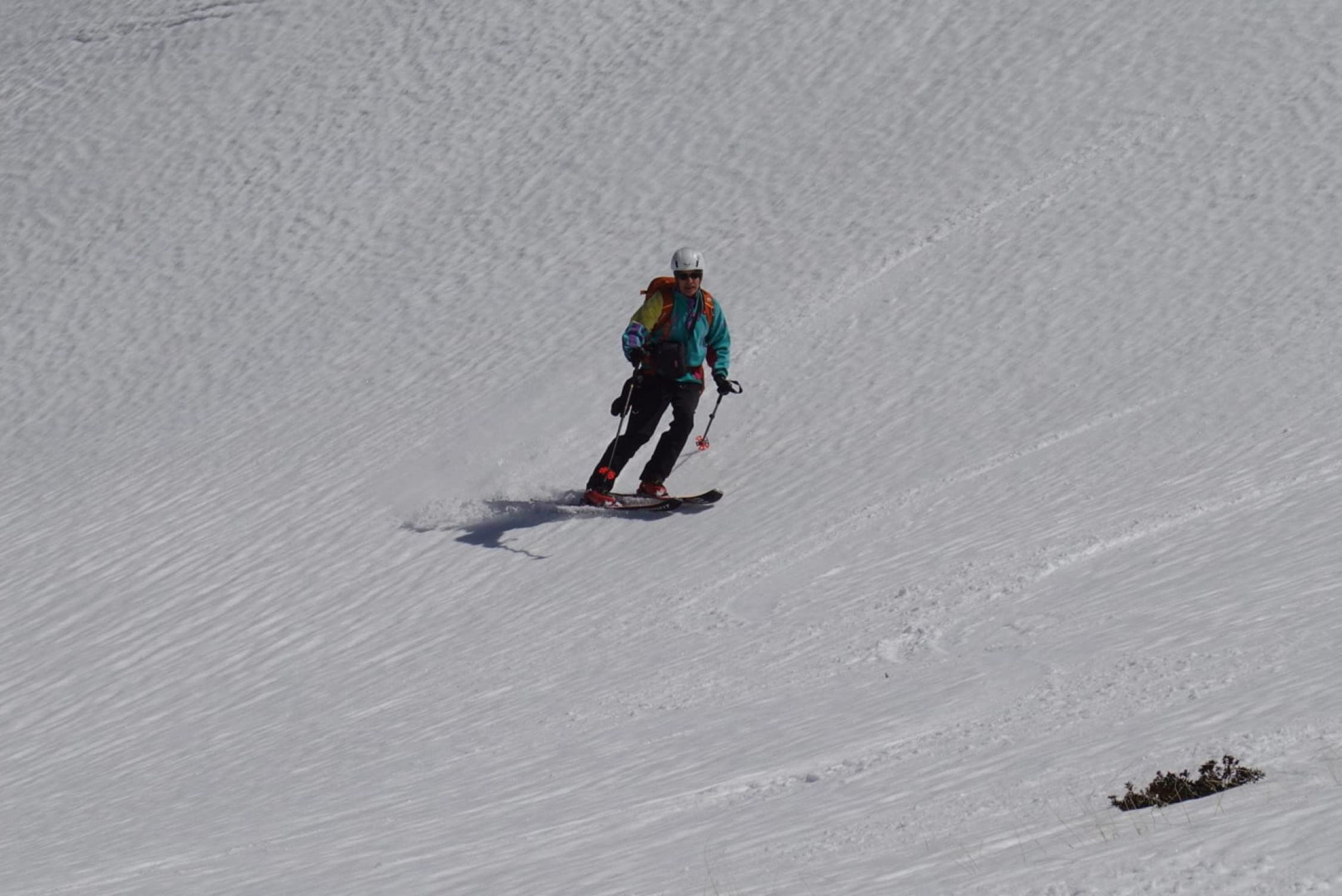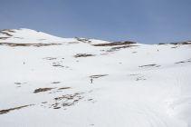 Schnee am Gipfelhang noch hart. Im Mittelteil einfach der perfekte Firn. Bei der Zirogalm etwas sulzig.