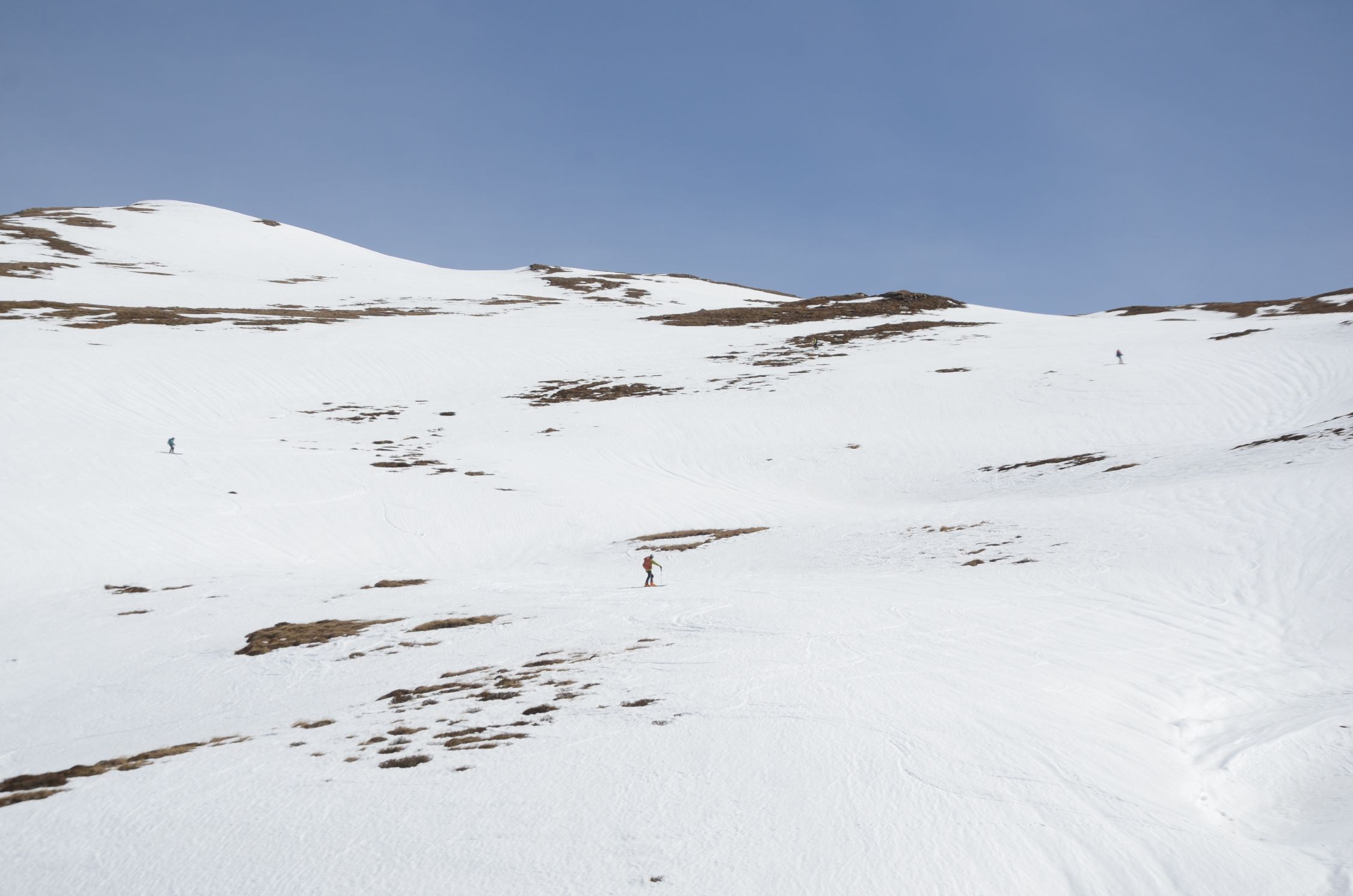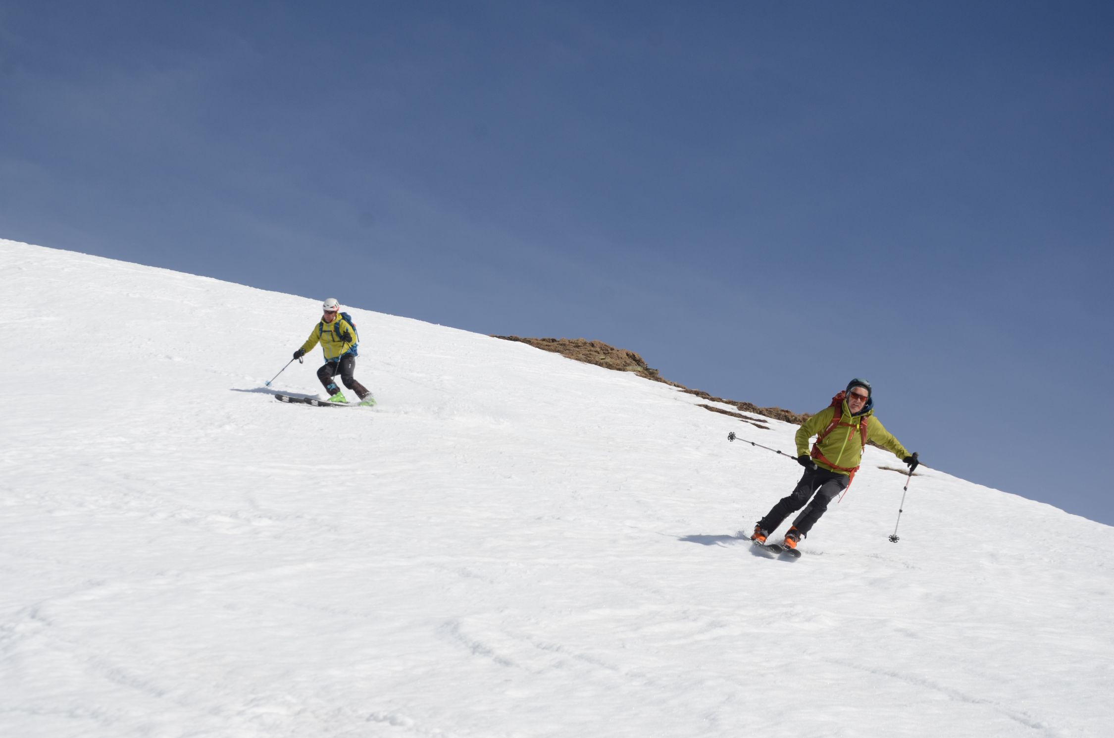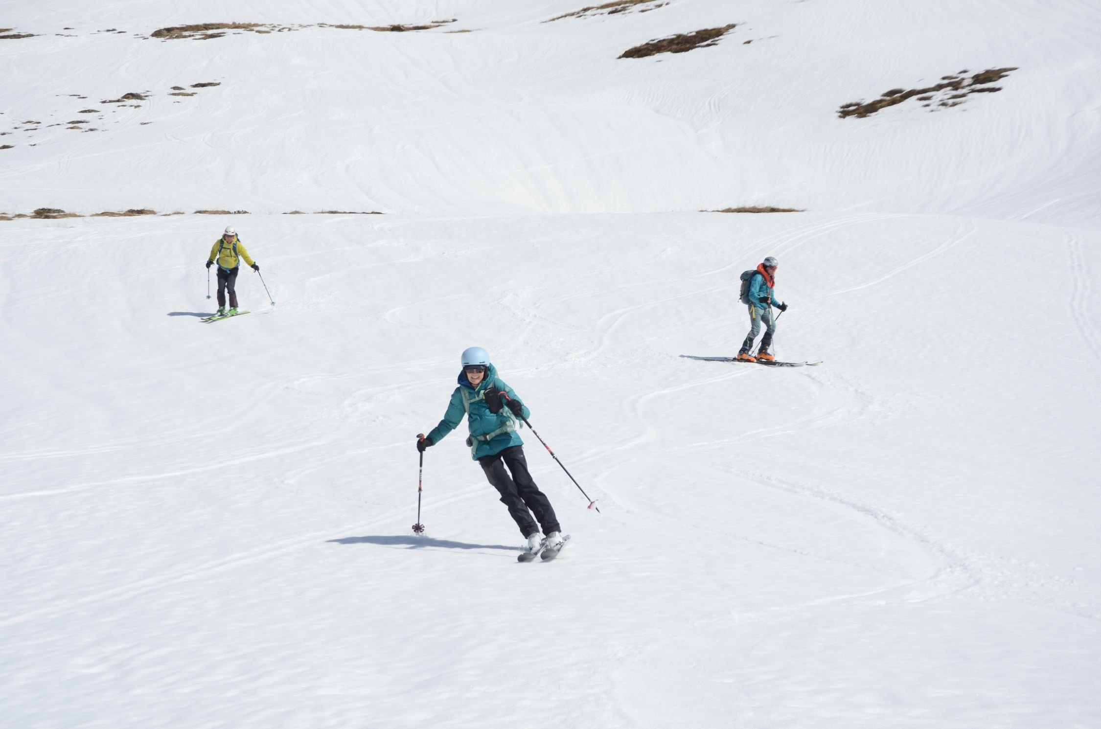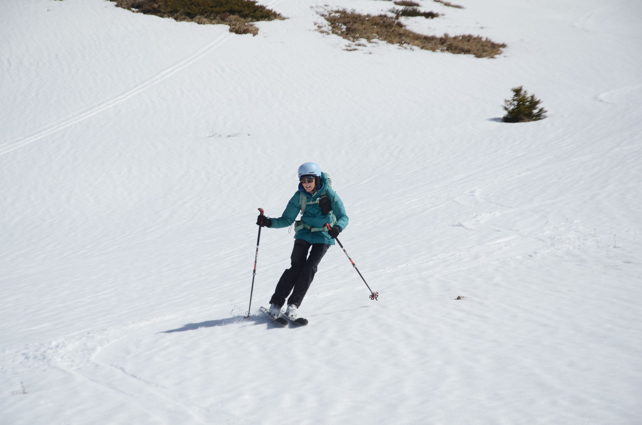 Schnee am Gipfelhang noch hart. Im Mittelteil einfach der perfekte Firn. Bei der Zirogalm etwas sulzig.