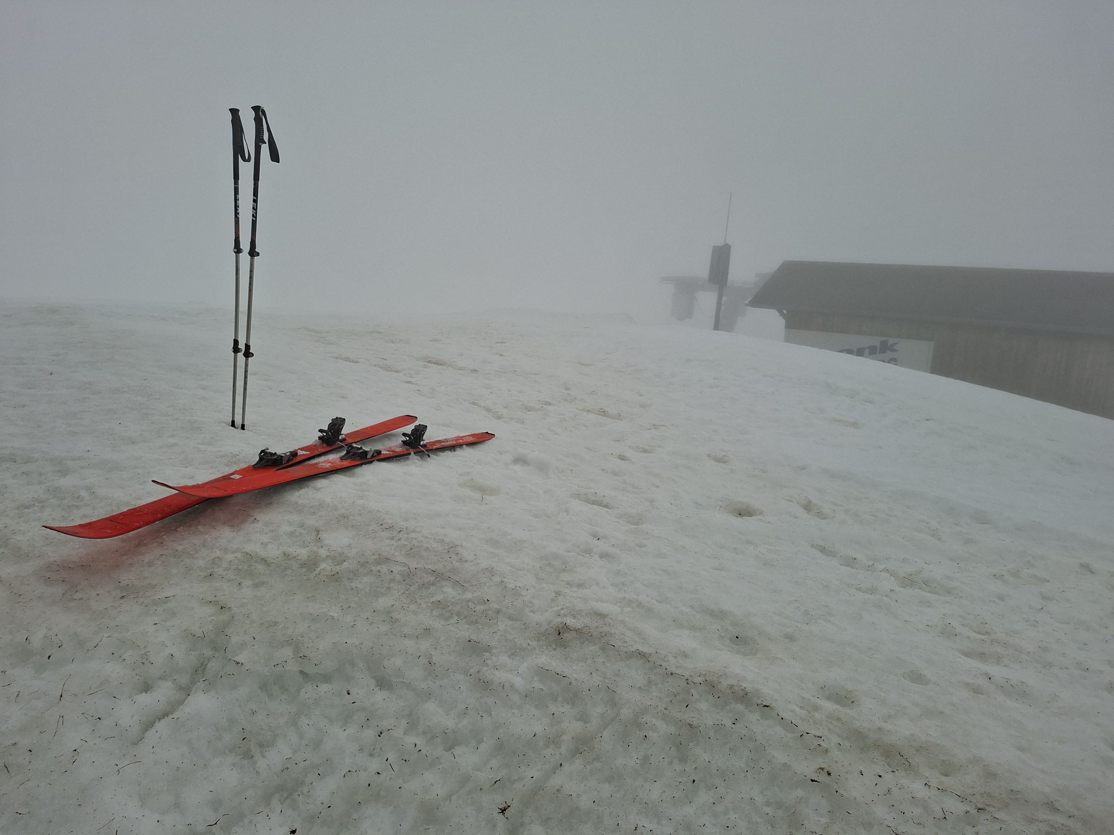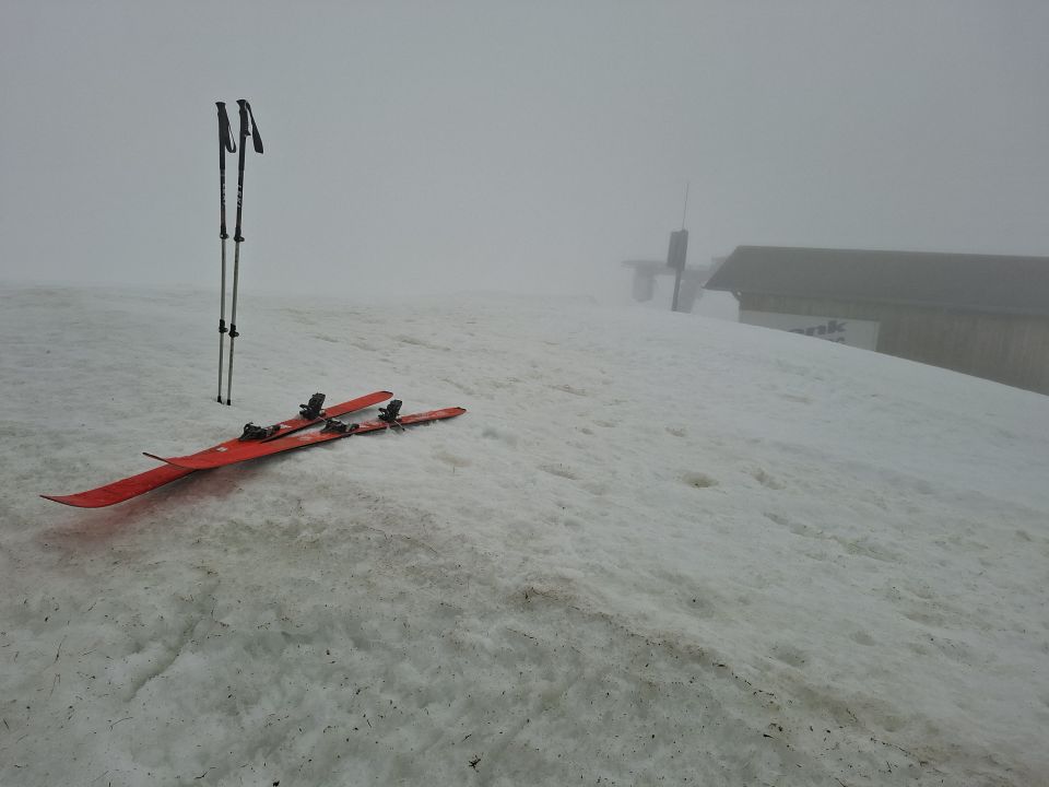 Start um 8:20 Uhr bei der Talstation Wallegg. Schnee hat's noch durchgehend genug, da der Kunstschnee langsamer wegschmilzt als das Naturprodukt. Schneequalität ganz ok, Sicht unten ok, weiter oben ziemlich knapp. Aber immerhin mehr oder weniger trocken.