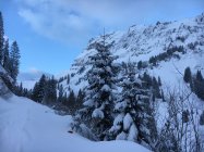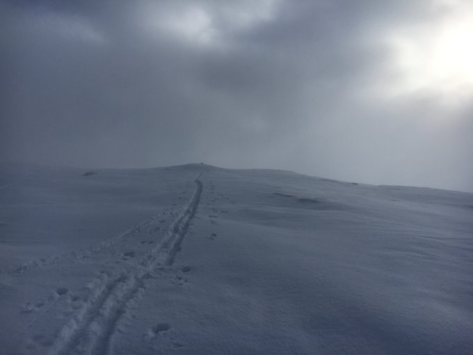 Etwas neblig, am Gipfel recht kühl. Bei der Abfahrt kamen mir einige Gruppen entgegen. Abfahrt wie auf der Skiroute eingezeichnet, im Waldstück bis zur Passstrasse hinunter etwas westlich abgefahren (mit Wegmarkiertungen gekennzeichnete Abfahrtsroute.