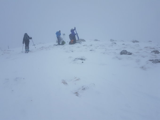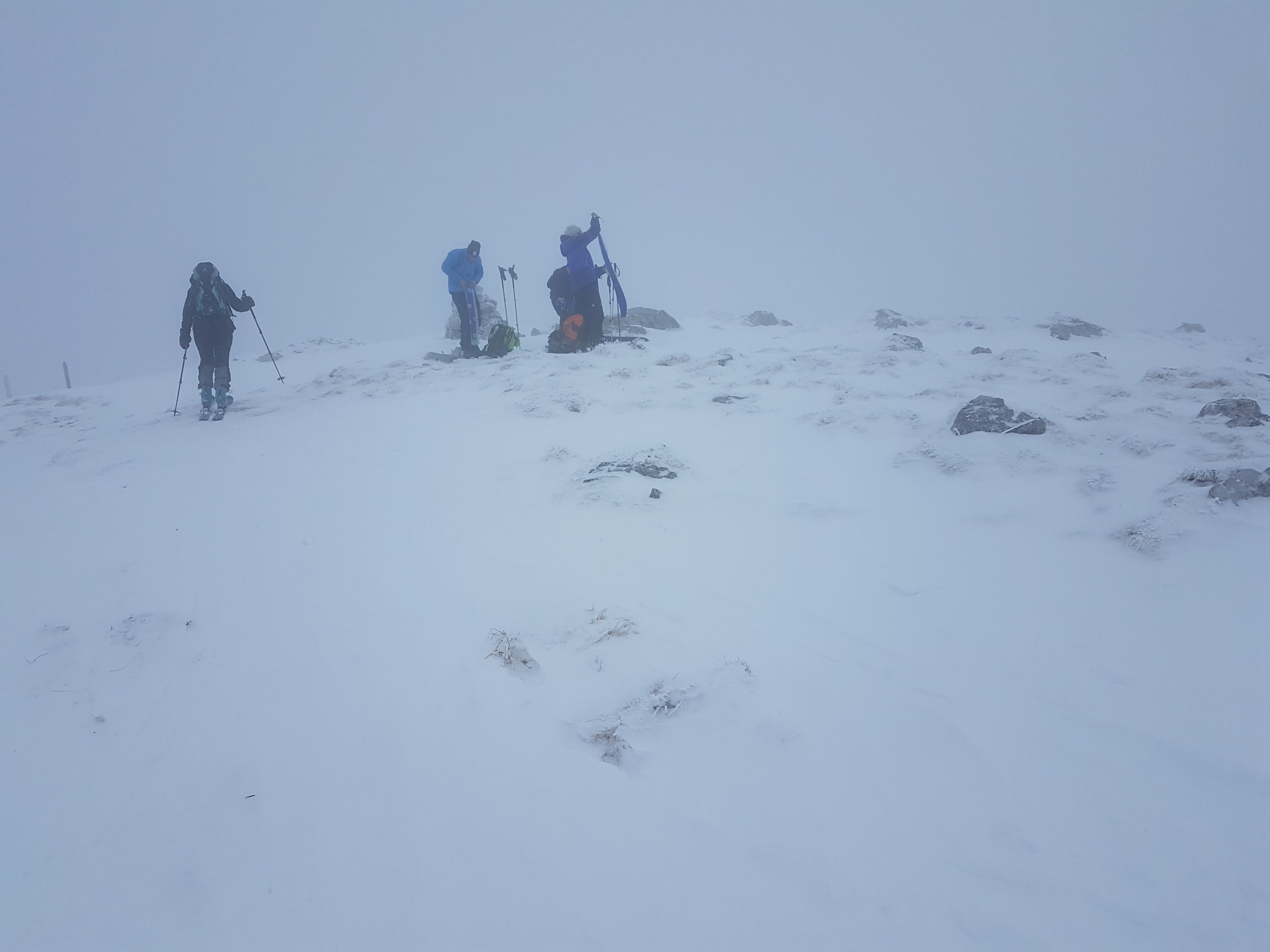 Mit 10-25 cm Neuschnee gut eingeschneit, so dass die alten Spuren nicht mehr störten. Mit Bise recht kalt, mehrheitlich bedeckt mit sehr wenig Aufhellungen. In Gipfelnähe guxig.