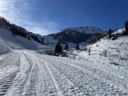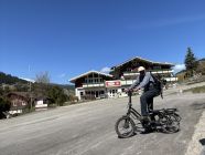 Wegen Straßenbauarbeiten zwischen Schwendle und Höfle verkehrt der Walserbus z.Zt. nicht bis Endstation Höfle bei der Talstation des Wildentallifts. Um nicht nach Riezlern zurückzulaufen, deponierte ich vor Tourenbeginn beim Gasthof „Alpenblick“ in Höfle mein E-Mini-Bike. Mit diesem fuhr ich dann zurück nach Riezlern. Der Gasthof Alpenblick hat z.Zt. Betriebsferien. Alternativ wandert man von Höfle nach Mittelberg und fährt mit dem Walserbus zum Parkplatz zurück. Der Busbetrieb zwischen Baad und Oberstdorf verkehrt tagsüber alle 20 Minuten. Ab 7.4. gilt bereits der Sommerfahrplan:
