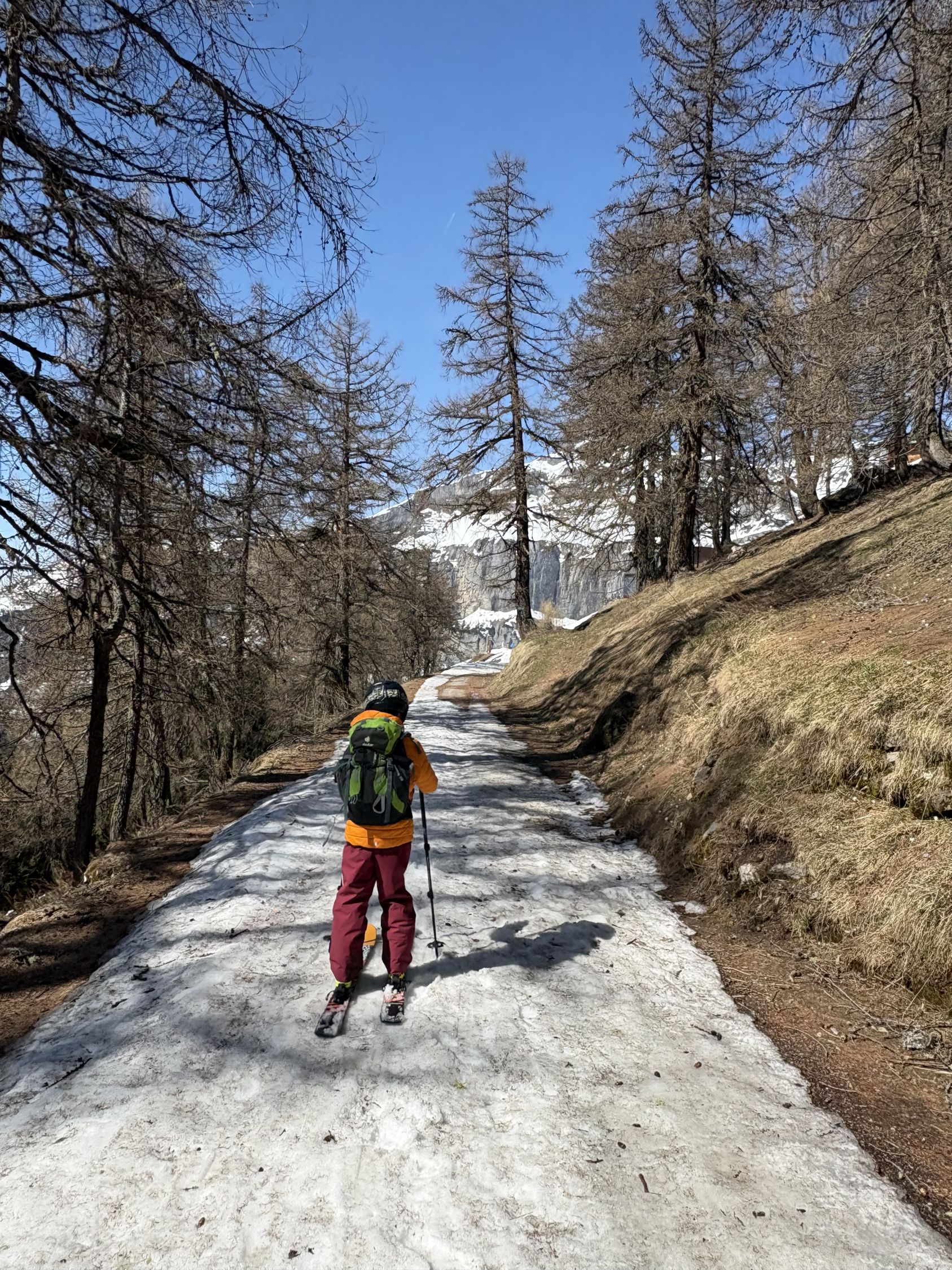 Der Aufstieg führte uns bis auf etwa 2500 m, wo wir abbrachen, da der Rücken weiter oben bereits weitgehend schneefrei war.