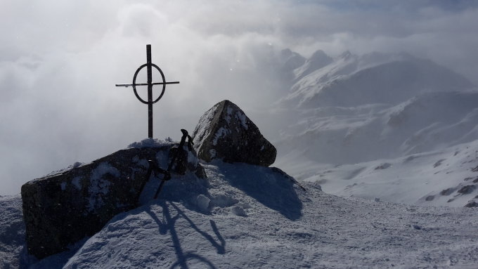 Am Gipfel unangenehm windig und saukalt, gefühlt im zweistelligen Minusbereich.