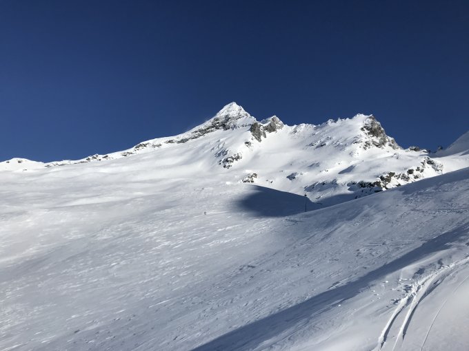 Aufstieg Normalroute von Berisal. Harscheisen von Vorteil. Neuschnee überall ca. 5cm, häufig verblasen. Gute Spur zum Gipfel, am Morgen viel Wind, der dann nachliess. Abfahrt vom Gipfel durch Nordwestflanke, Hartschnee, windbearbeitet, ruppig, einige Runsen drim. Ausfahrt durch steile, enge Lücke mit Hartschnee zurück aufs Plateau. Abfahrt zu Bortelsee schön auf meist guter Schneeauflage (weiche Triebschneefelder in den Mulden). Wiederaufstieg zum Spitzhörnli und Abfahrt durchs schön regelmässig eingeschneite Westcouloir runter nach Berisal. Im Couloir harter, aber griffiger Schnee mit flächendeckend 5cm Pulverauflage.