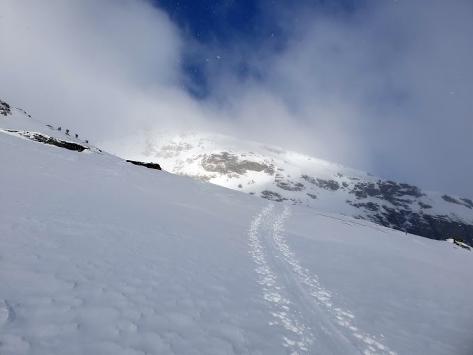 Durch den stürmischen Wind recht unterschiedliche Schneeverhältnisse, welche durch die mässige Sicht noch erschwert wurden. Teils windgepresst und teils powder im raschen Wechsel