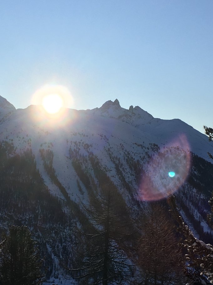 Start um 8 Uhr Parkplatz Samedan Muntatsch, minus 12 Grad, windstill. Angenehmer Aufstieg auf dem Alpsträsschen bis Alp Muntatsch, ab 9 Uhr Sonne. Ab Muntatsch lange Traverse bis Margunin und weiter im Valletta Tal zur Fuorcla Valletta. Nach Margunin starker unangenehmer Wind von der Fuorcls Valletta her, sehr kalt. Ab Fuorcla Valletta windstill und etwas heikle Traverse in der Westflanke bis Südostflanke, windbearbeitete harte Unterlage, einige Steine, Harscheisen obligatorisch. Ein kurzes Stück in der Südflanke zu Fuss und weiter mit Skis bis Gipfelaufbau. Nun in leichter Kletterei zum felsigen Gipfel. Abfahrt den schönen Südgang Las Trais Fluors hinunter und weiter auf schöner markierter und präparierter Piste via Marguns, Saluver nach Samedan.