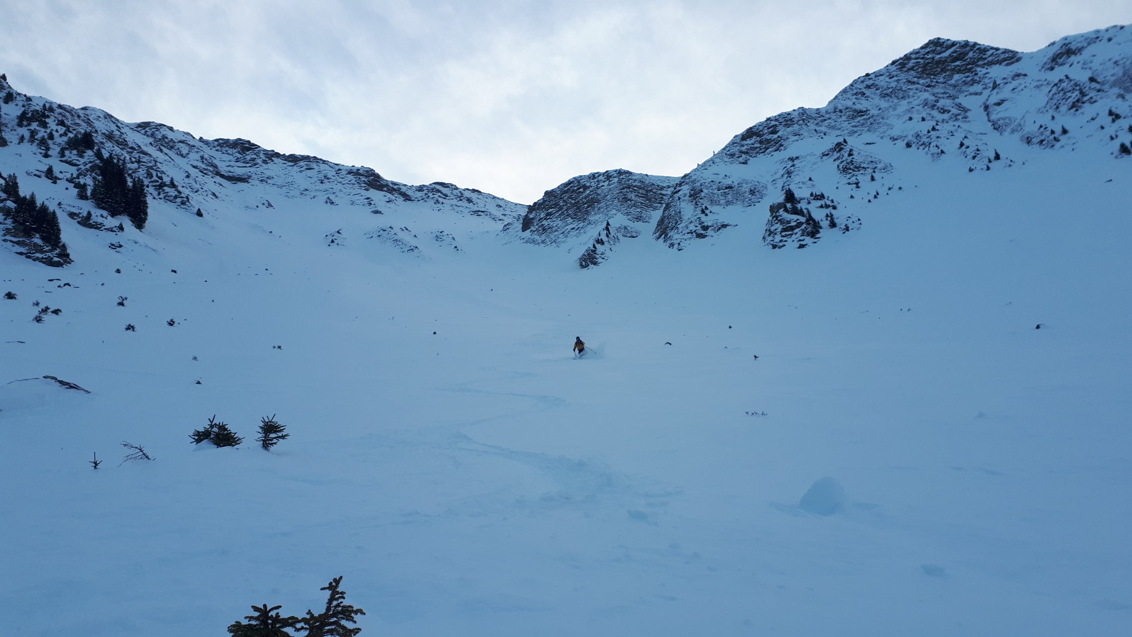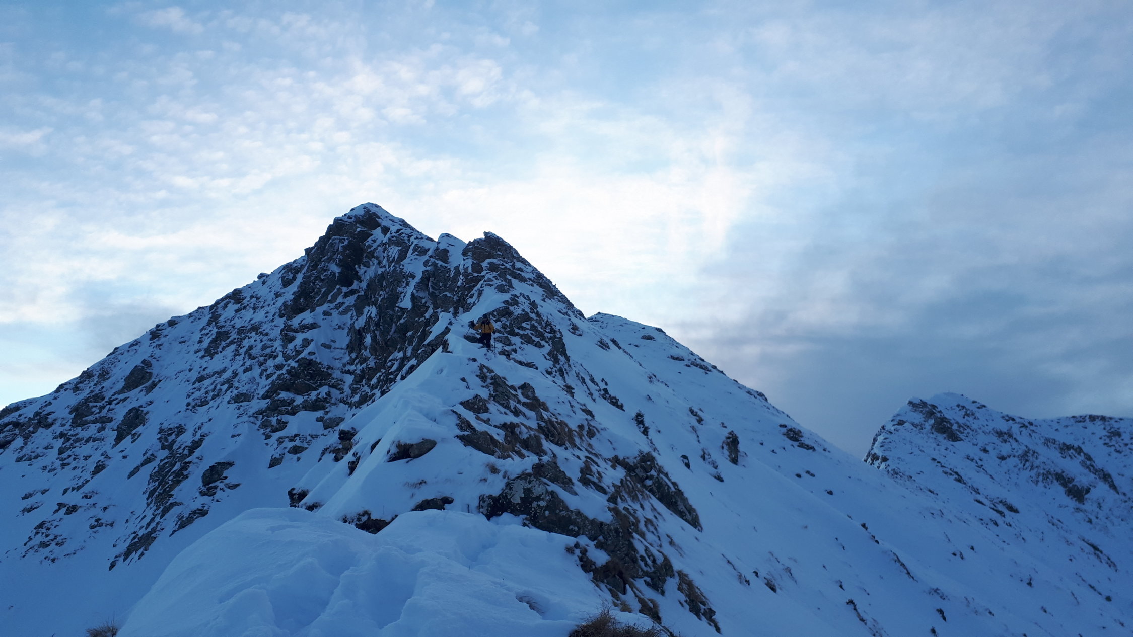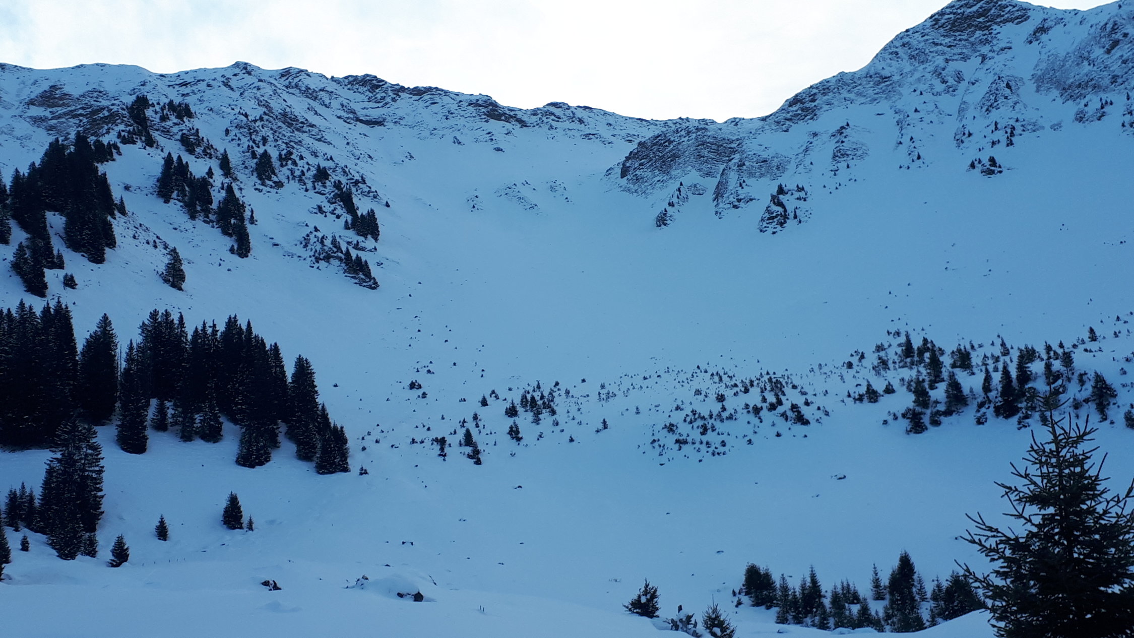 Peu de neige (5 cm) au départ du parking.. puis de plus en plus en montant. Enneigement correct sur fond dur au dessus de 1600, puis assez bon à partir de la derniere Hütte (point 1742m), et dans la face (20 à 30 cm de fraîche, qq accumulations).. attention tout de même aux nombreux rochers que partiellement enfouis.. sur l arrête, conditions ok (piolet, pas utilisé les crampons). On s est arrêté au pre-sommet à 2295m. Belle descente dans poudreuse un tout petit peu travaillé par le vent, on sent quand même la couche dure en dessous...ski-cailloux encore bienvenu pour le bas, car ça touche encore beaucoup..