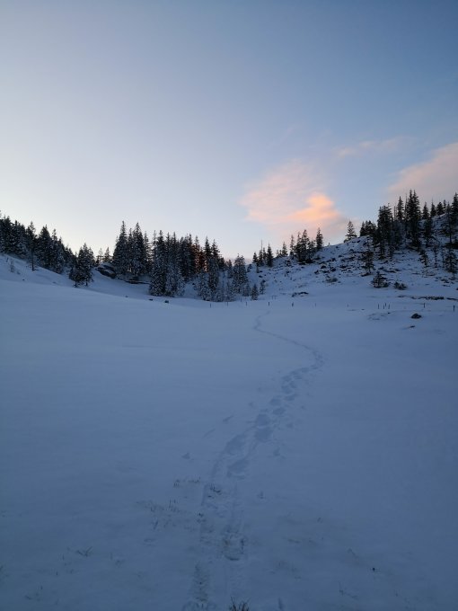 Mit Schneeschuhen gemacht, diese sind aber auch erst ab Alp Gumm von Nutzen. Es ginge aber auch ohne. Ski können getrost zu Hause gelassen werden. Richtig Schnee, ca. 15-20cm Powder mit Unterlagen hats erst in der Ebene nach Alp Gumm zwischen Studberg und Rägeflüeli.