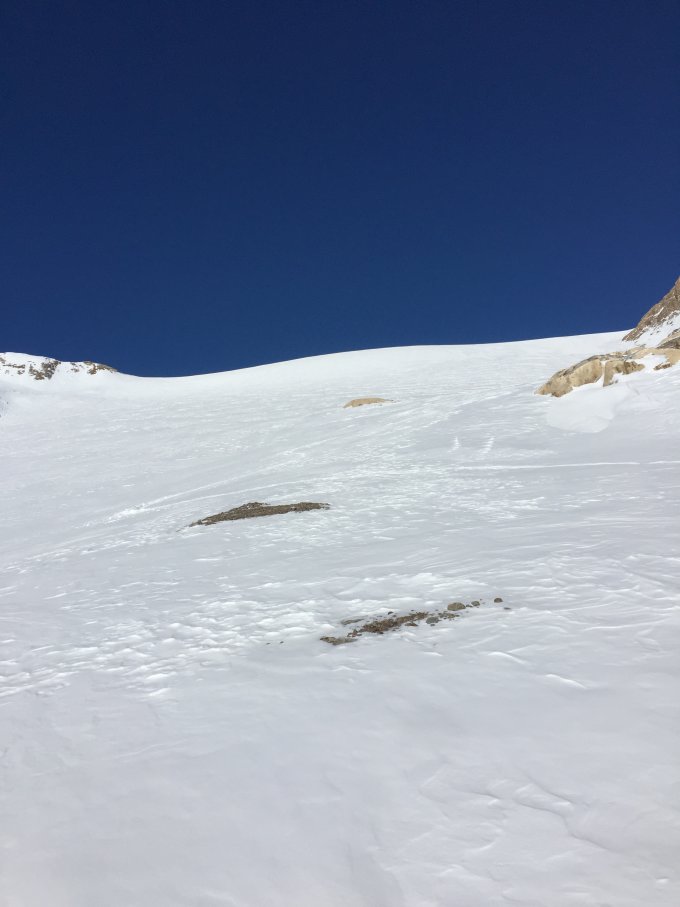 Abfahrt via Chüefadfirn , mehrheitlich weicher Neuschnee , nicht Pulverschnee
