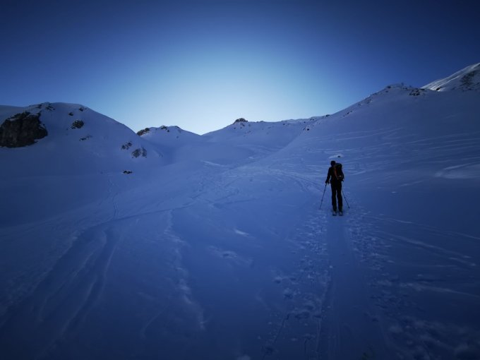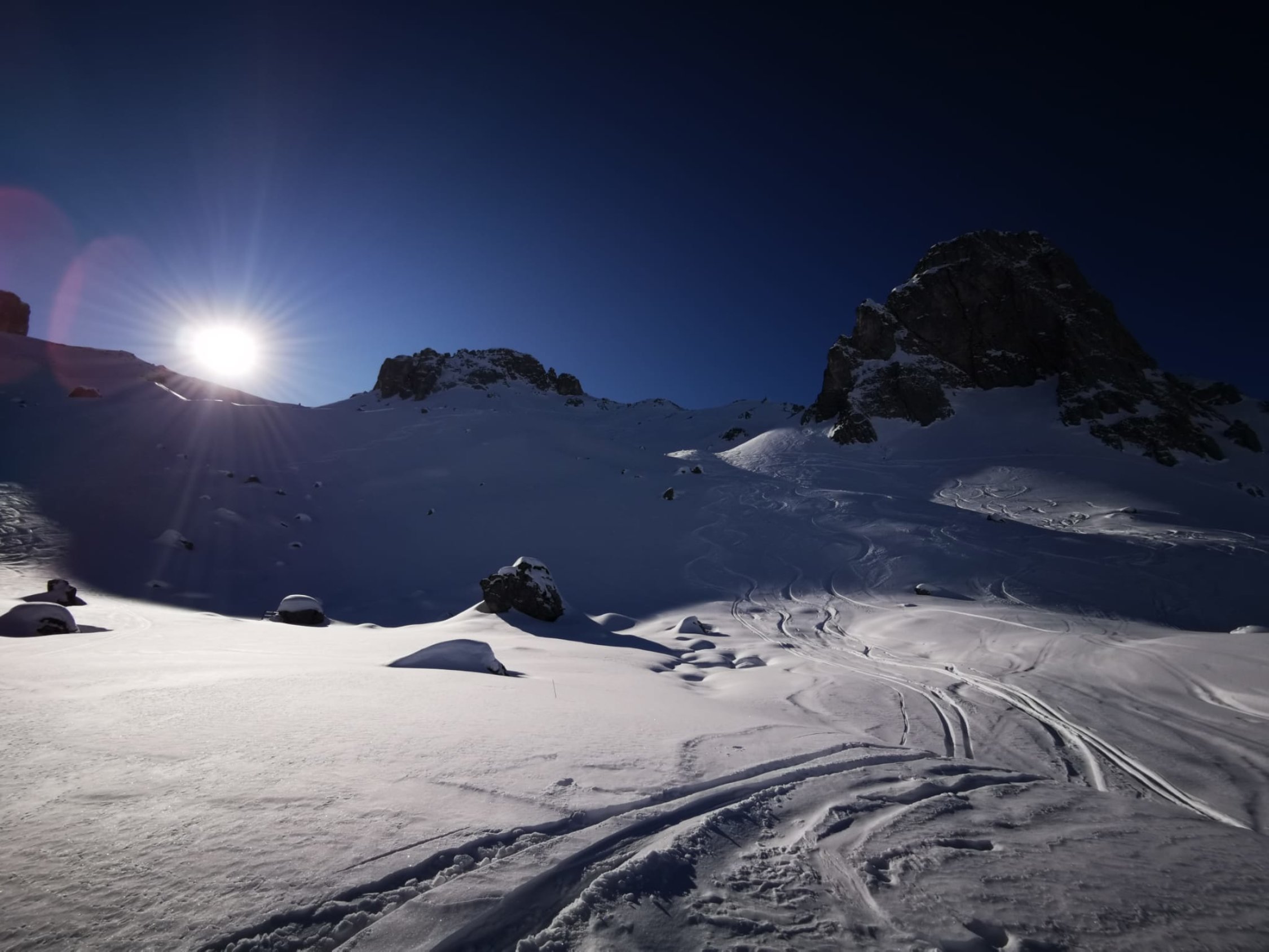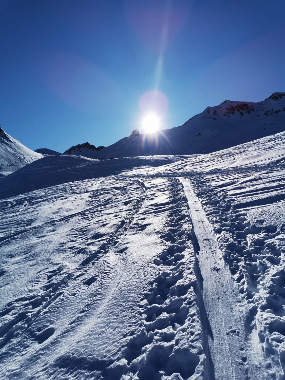 Noch genug Schnee aber nicht üppig, die gegenüberliegenden Südhänge sind unten teils schon aper!
