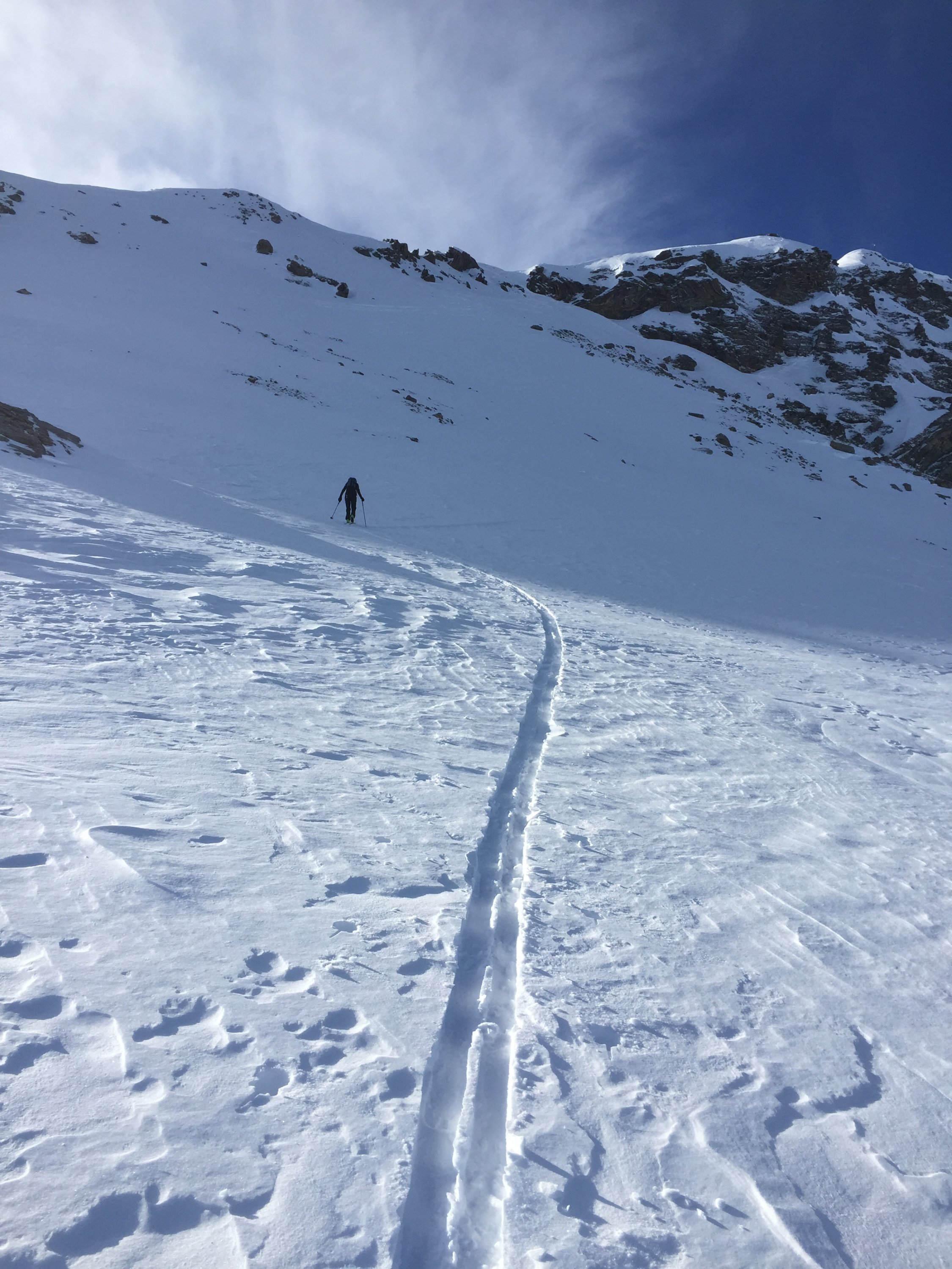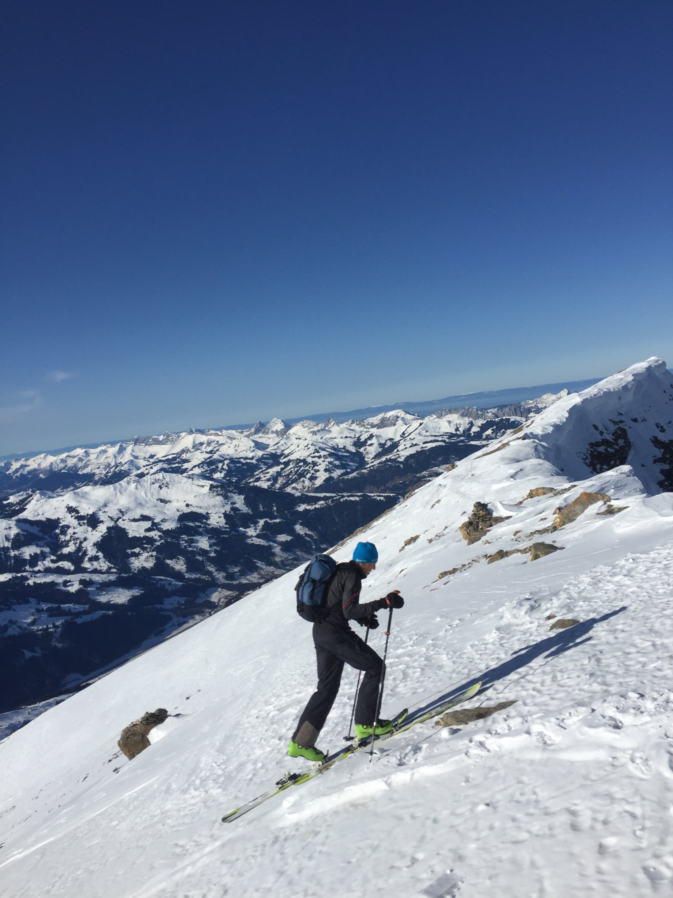 Top Wetter. Wir sind über die Krete neben dem Biregrabe aufgestiegen. Die Aufstiegsspur am Hintere Berg wäre besser gewesen. Auch der Übergang auf den Grat ist in gutem Zustand. Nur wenige Leute unterwegs. Auf dem Gipfel blies ein kalter Wind und verhinderte einen langen Aufenthalt. Abgefahren sind einige durch den Hintere Berg und ich fuhr den Biregrabe runter. Grösstenteils war sehr schön zu fahren, zwischen Pulver und Presspulver. Am Hintere Berg war der Pulver noch besser. Zum Teil kurze Stellen mit einem leichten Deckel. Eine sehr lohnende Tour.