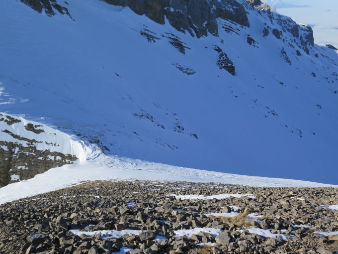 Ab ca. 1700 höhe gute spur zum Blüemberg. Den Chronenstock durfte ich selber spuren. Bis pass zwischen Chaiserstock und Chronenstock gut. Von da an kein Schnee. Kamin geht gut 2x kurz kein Schnee. Geht im augenblick gut ohne steigeisen.
