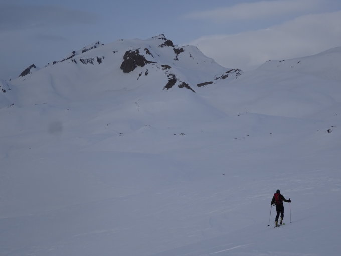 Harter Schnee auf der ganzen Strecke, Harscheisen sehr zu empfehlen. Besonders in den steilen Passagen ist der Aufstieg teilweise anstrengend, da der Schnee hart bis sehr hart ist. Eine brauchbare Aufstiegsspur ist nur zum Teil vorhanden.