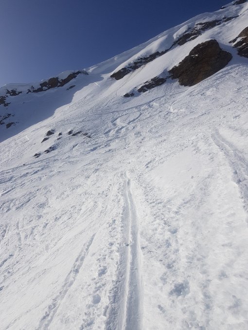 Aufstieg in guter Spur. Bei Abfahrt Einfahrt in Gipfelhang hart durch vieles Abrutschen. Sobald man in Schattenbereich bekommt,guter Pulver. Alles zerfahren aber