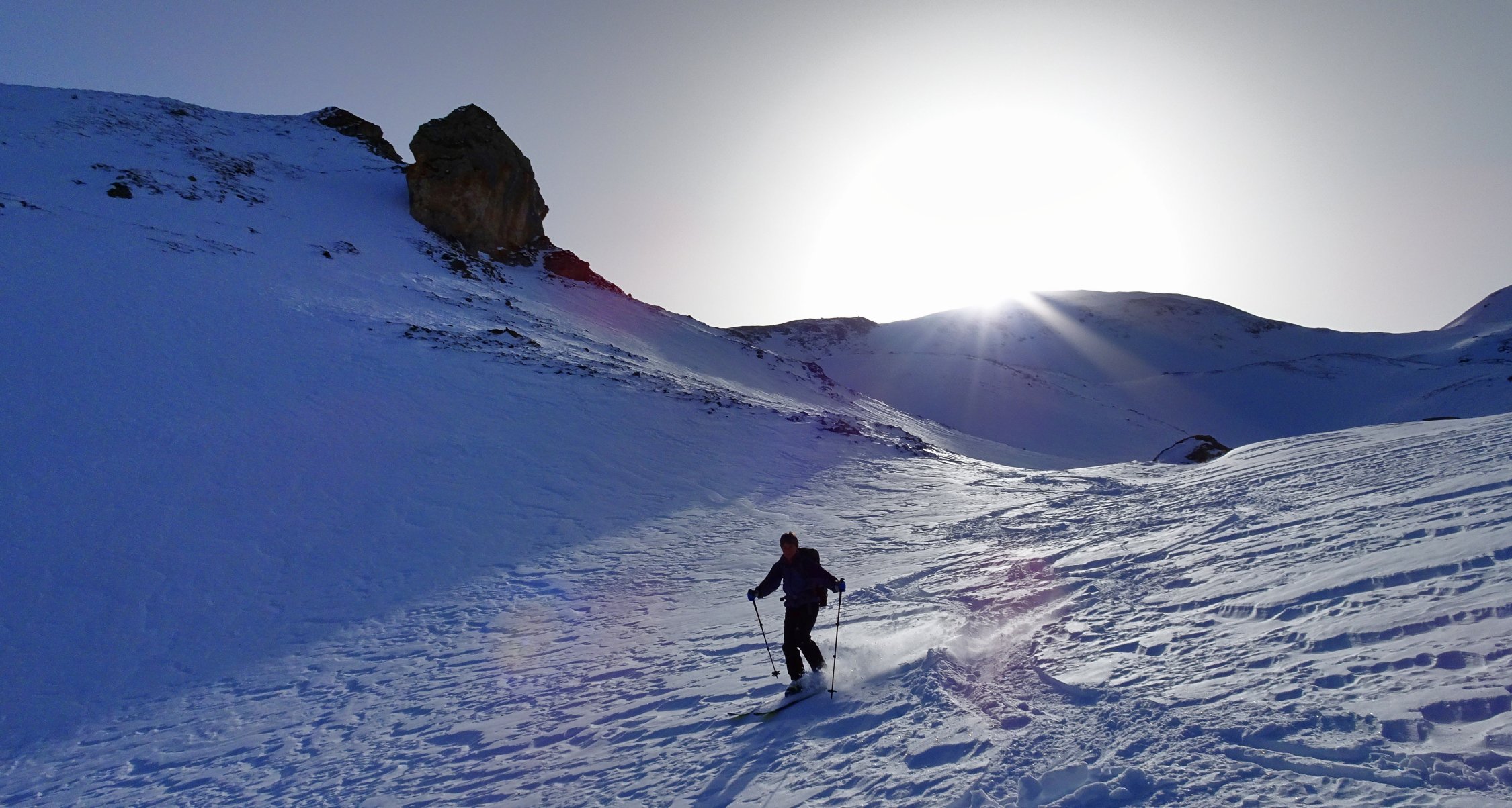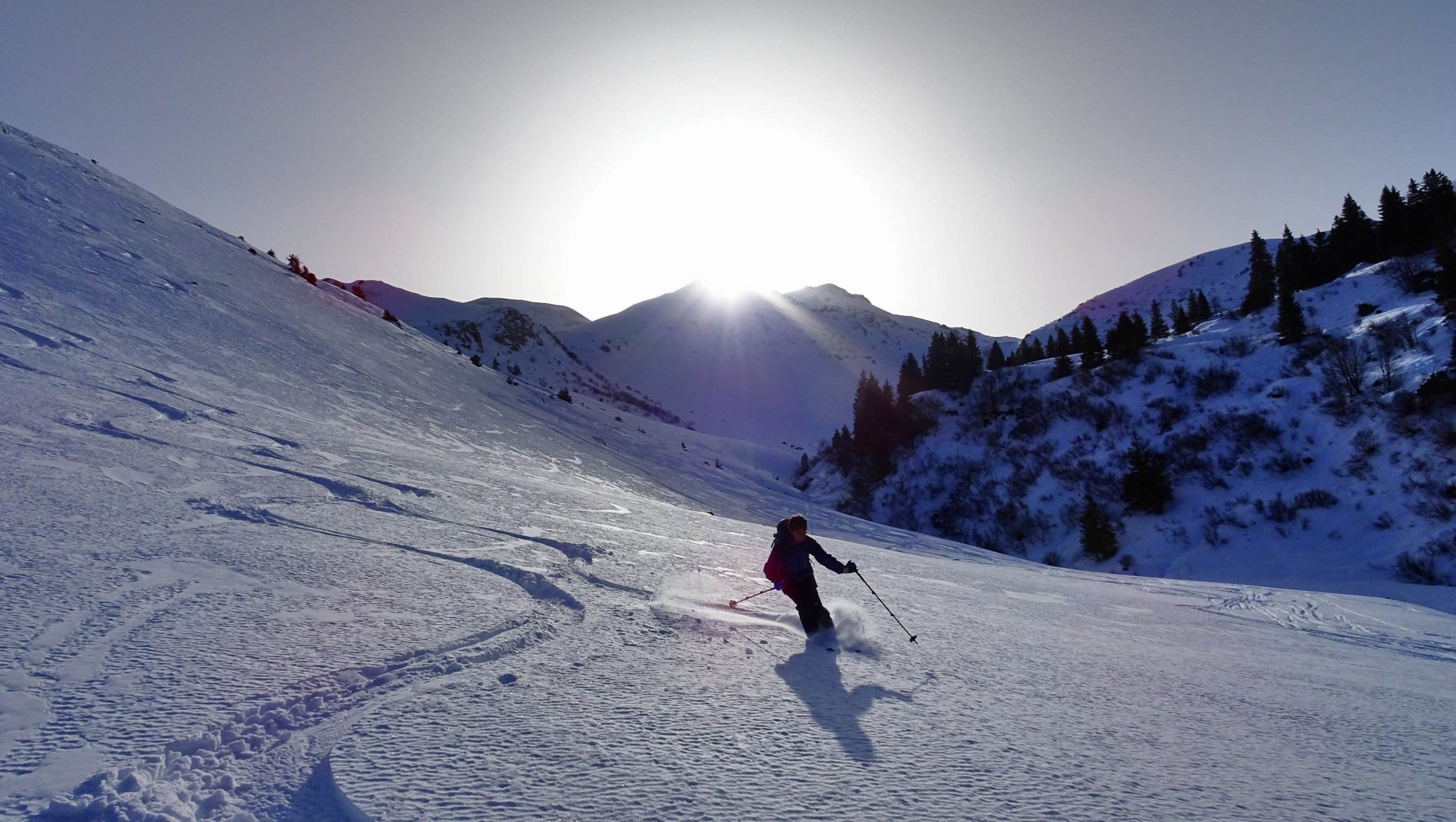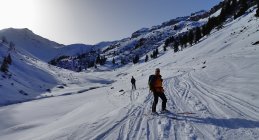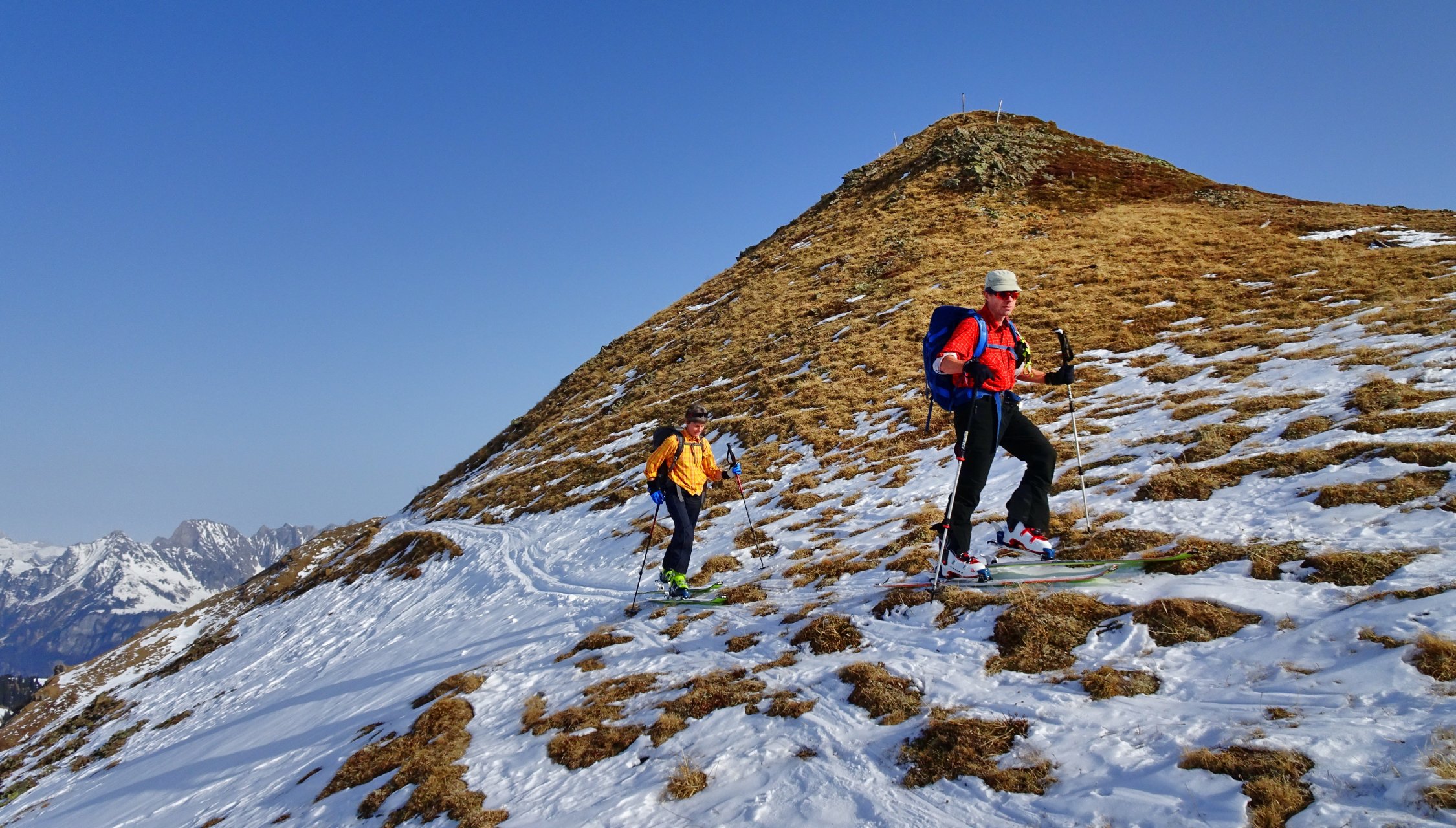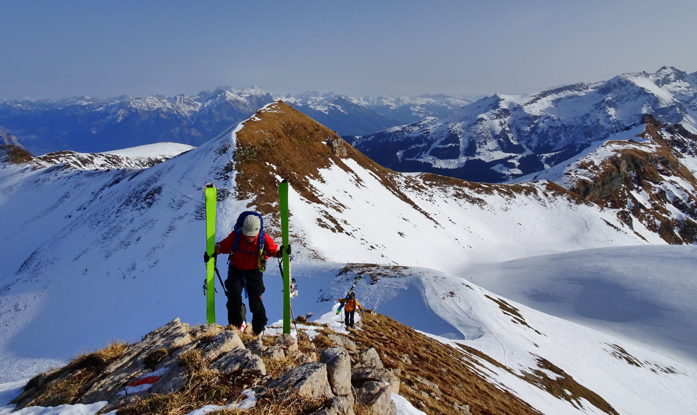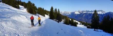 Der Aufstieg geht problemlos. Man kann ab dem Parkplatz in Vermol mit den Ski loslaufen. Im Gebiet hat es wenig aber doch genügend Schnee für die Skitouren. In den Kammlagen hat der Wind den Schnee verfestigt. Mit jedem Hang hinunter werden die Verhältnisse besser bis super.