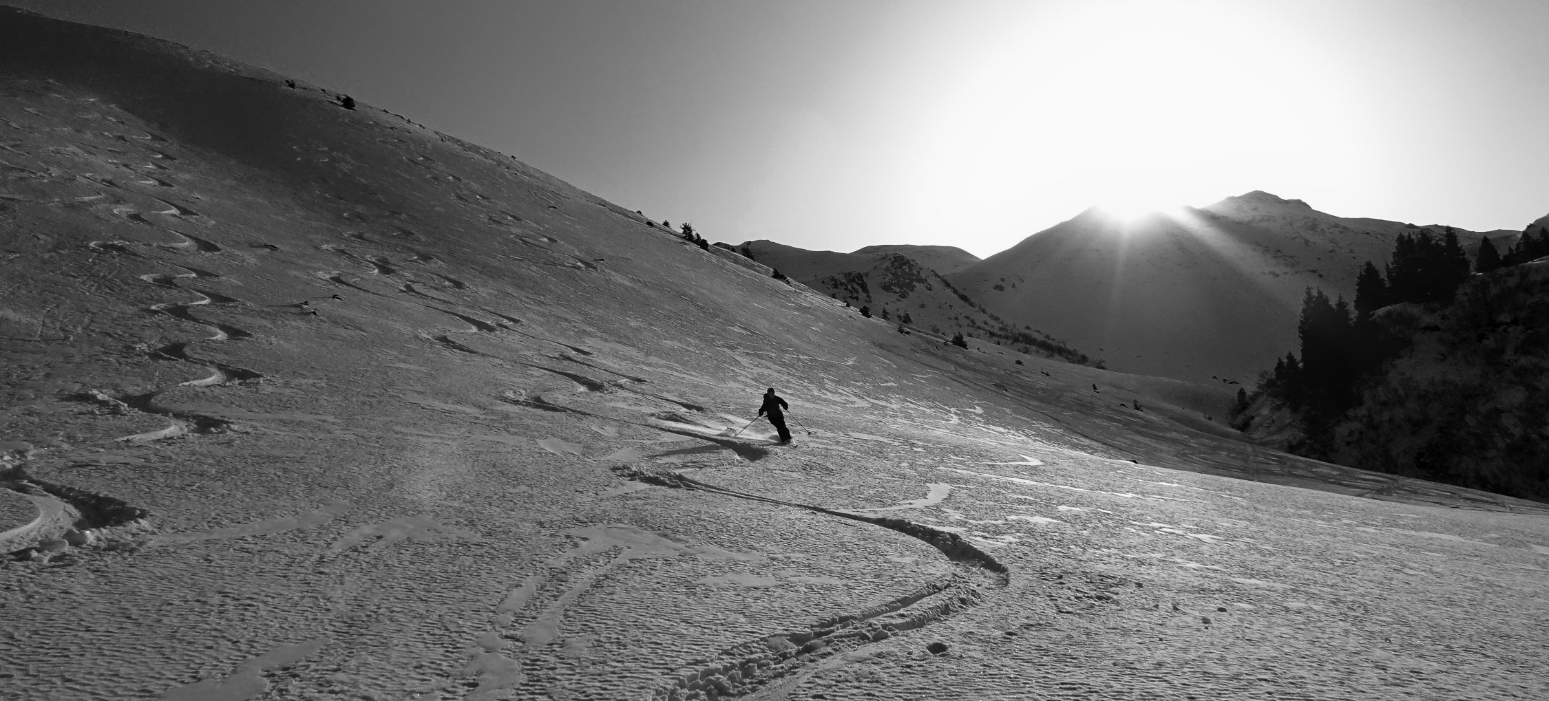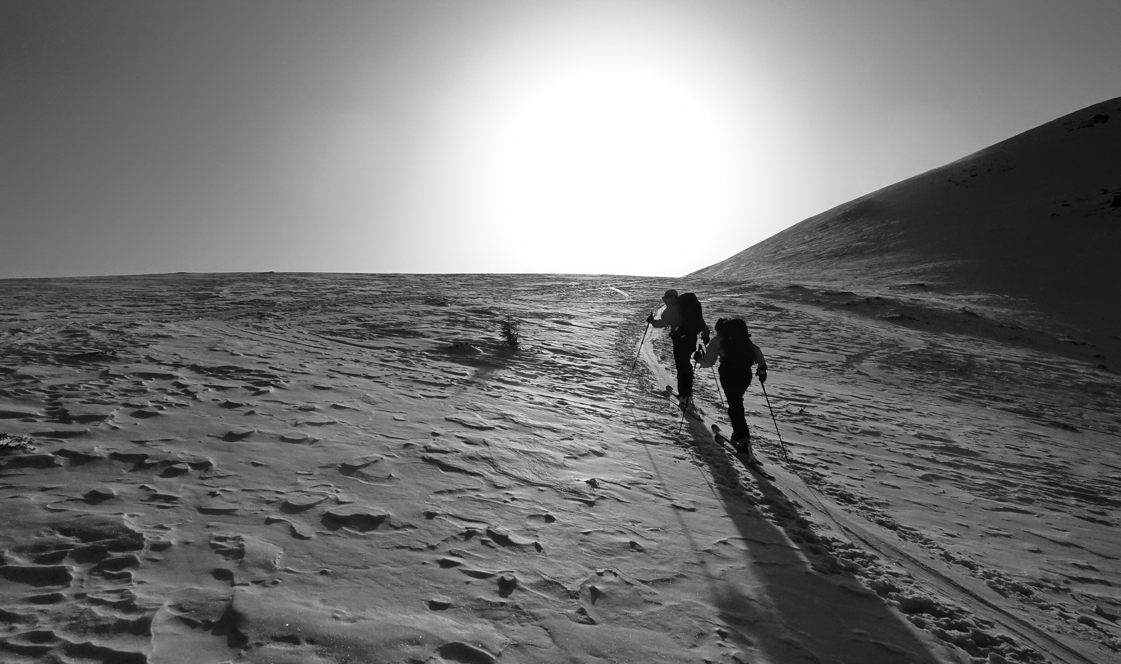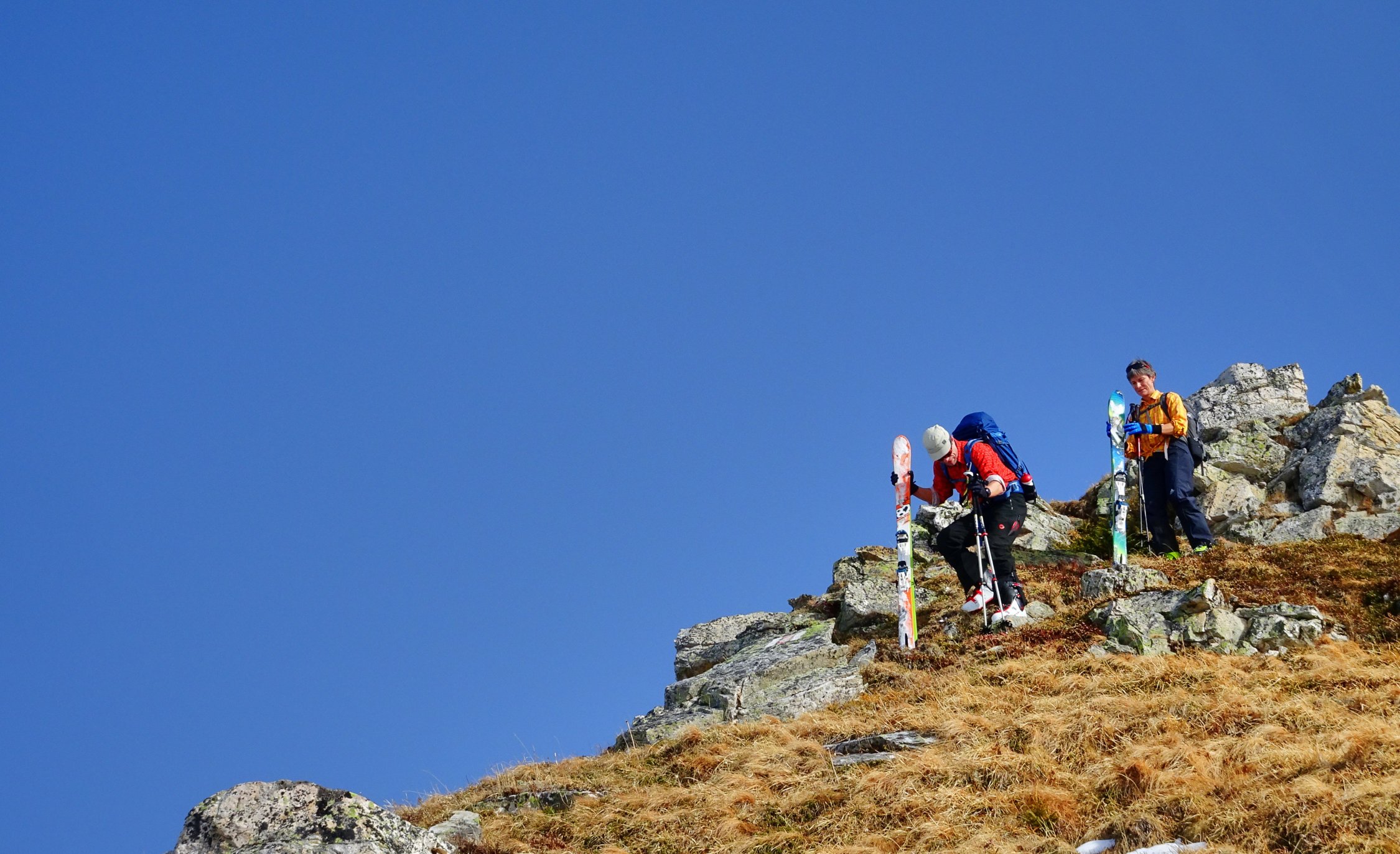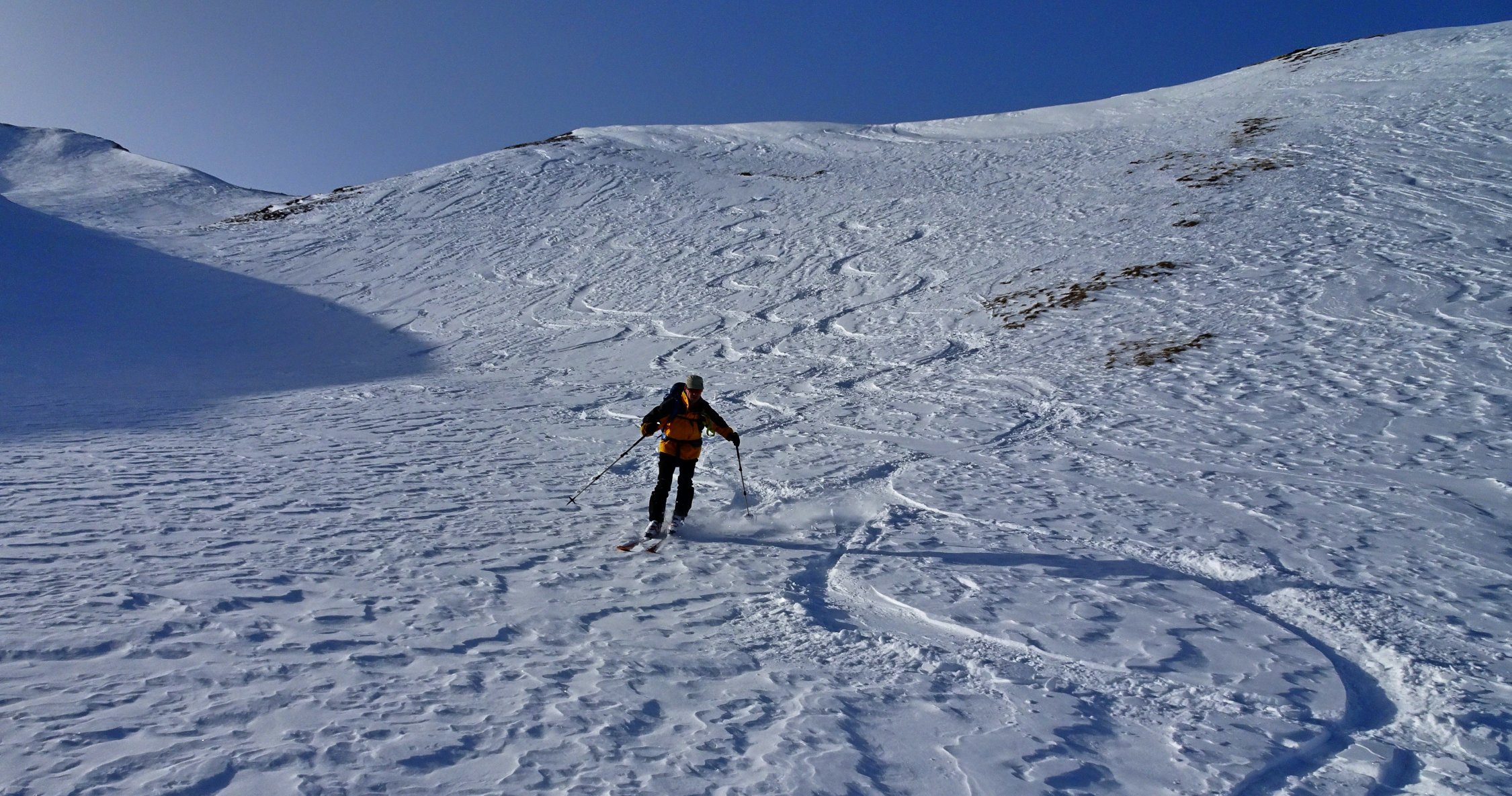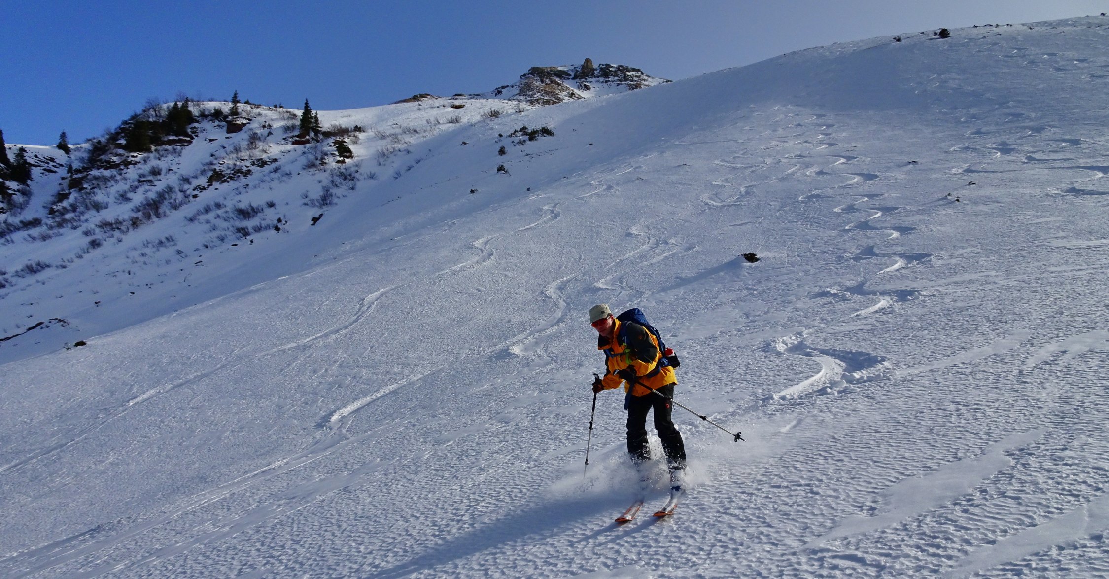 Der Aufstieg geht problemlos. Man kann ab dem Parkplatz in Vermol mit den Ski loslaufen. Im Gebiet hat es wenig aber doch genügend Schnee für die Skitouren. In den Kammlagen hat der Wind den Schnee verfestigt. Mit jedem Hang hinunter werden die Verhältnisse besser bis super.