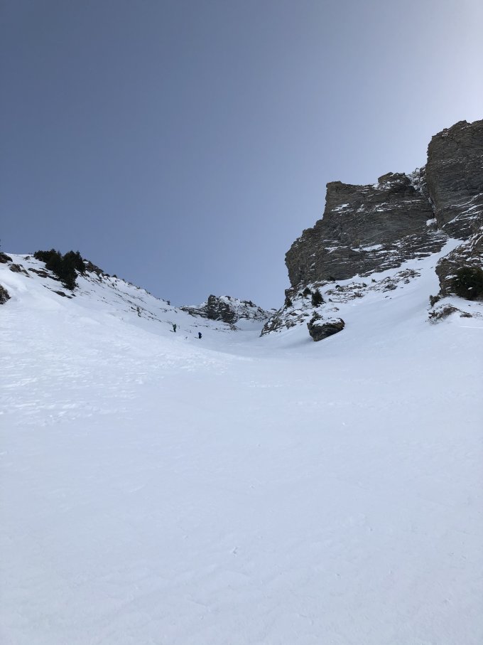 Generell wenig Leute in der Gegend. 5 Personen Richtung Gsür unterwegs. Einige Richtung Rauflihorn Nordabfahrt. Zurzeit nicht mehr zu empfehlen sind alle Südausgerichteten Gipfelhänge (Galmschibe, Männliflue).