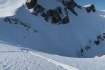 In der Abfahrt dann die Überraschung: Der Schnee war grösstenteils gut bis sehr gut zu fahren. Sprich oft ca. 10-20 cm schöner Pulver, selten etwas windgepresst.