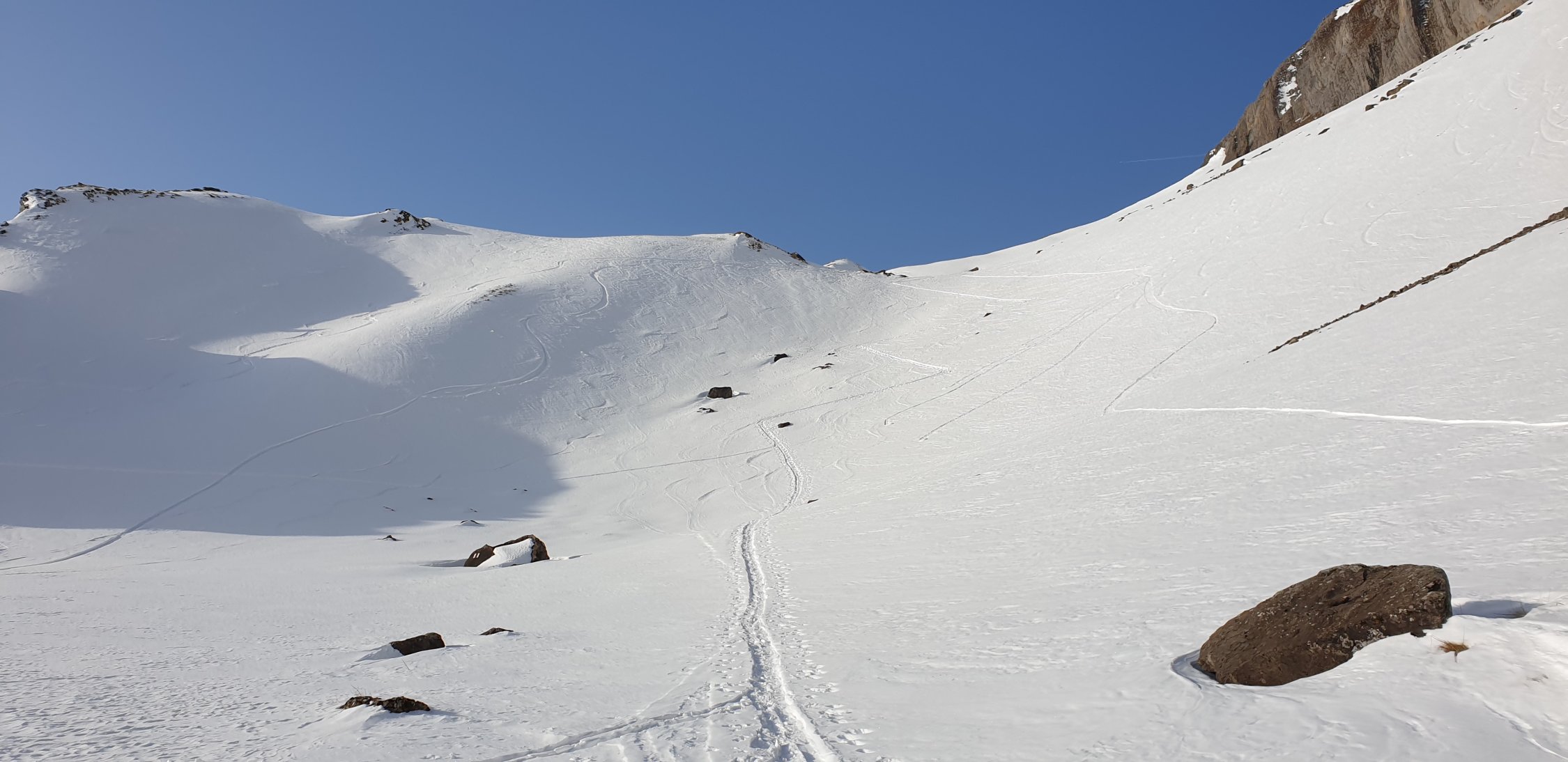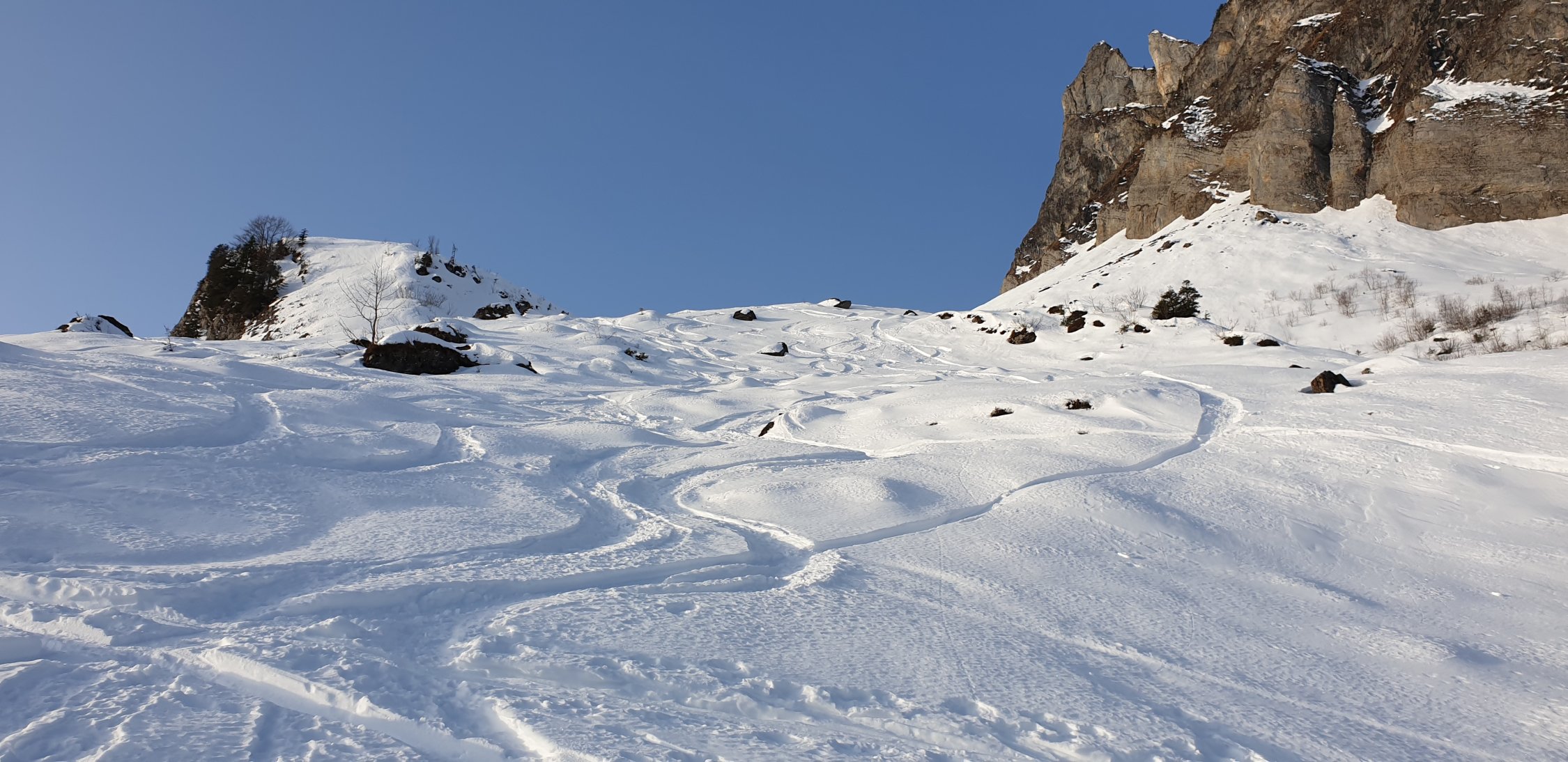 Start der Tour am 8 Uhr beim Schwarzenbach, am Anfang noch sehr wenig Schnee entlag der Alpstrasse, einige Steine drücken aus der Strasse hervor, aber schon bald wurde es gut, nach der 5 Kehre dann Richtung Waldhüttli, die Qurung zur Alp Gigen durch den Waldweg wie immer die Schlüsselstelle, da mussten die Ski getragen werden, dann problemlos bis zum zum Träsmerenhöreli hoch mit Ski, die Schneeverhältnisse waren viel besser als erwartet, grösstenteils noch Pulverschnee.