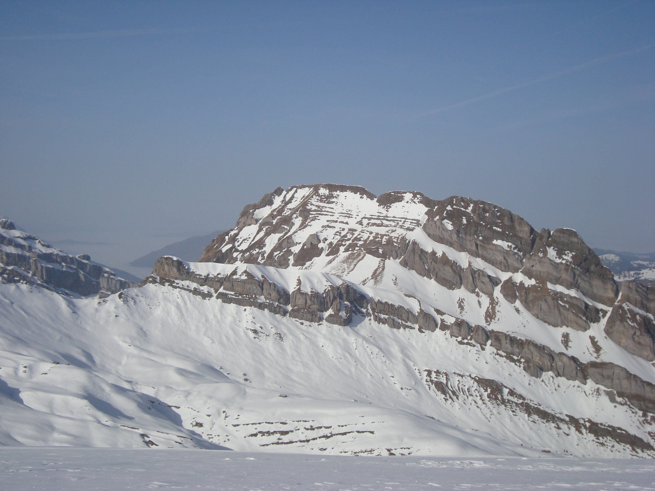Am Ausstieg zum Gipfelgrat etwas steinig und abgeweht. Hier ist eine präzise Aufstiegstechnik von Vorteil. Auf dem Sangigrat legte ich dann, wie auch eine grössere Luzerner Gruppe, eine ausgedehnte Gipfelrast ein. Angenehm warm und windstill.