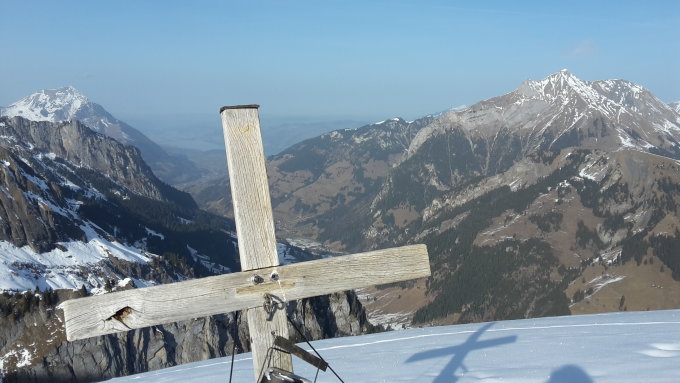 Strasse bis Griesalp im Aufstieg noch knapp mit Ski begehbar (wenn man keine Hemmungen hat, mit Fellen auf der teils aperen Strasse aufzusteigen), Abfahrt nicht zu empfehlen (zu viele Steine auf den schneebedeckten Stellen, wir haben die Skis zum Abstieg gleich aufgebunden). Vom Gipfel bis Dünde Mittelberg noch oft schöner Pulver, unterhalb viele Steine, aber auf dem Strässchen bis Griesalp noch problemlos zu fahren. Recht warm und wenig Wind.