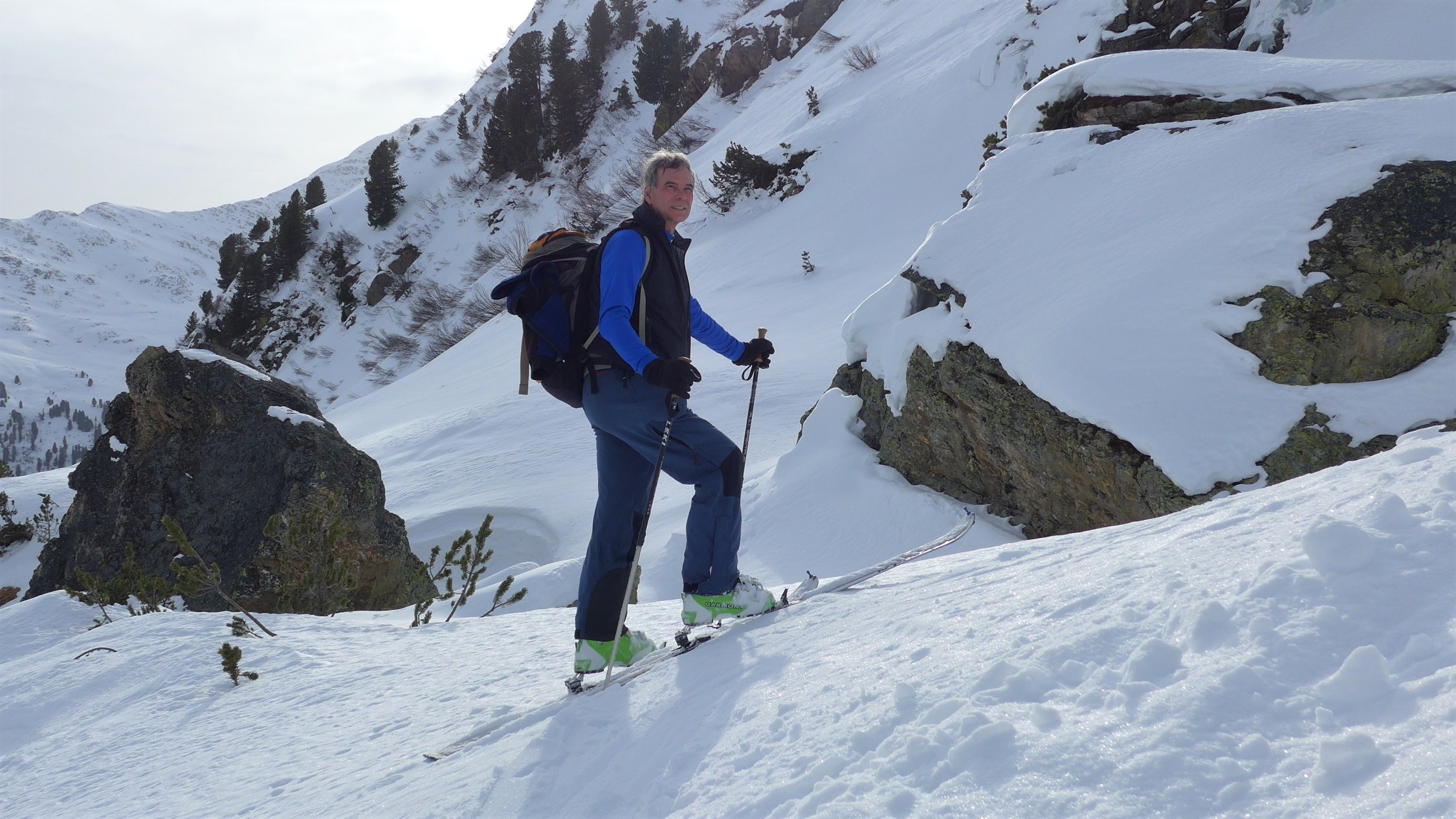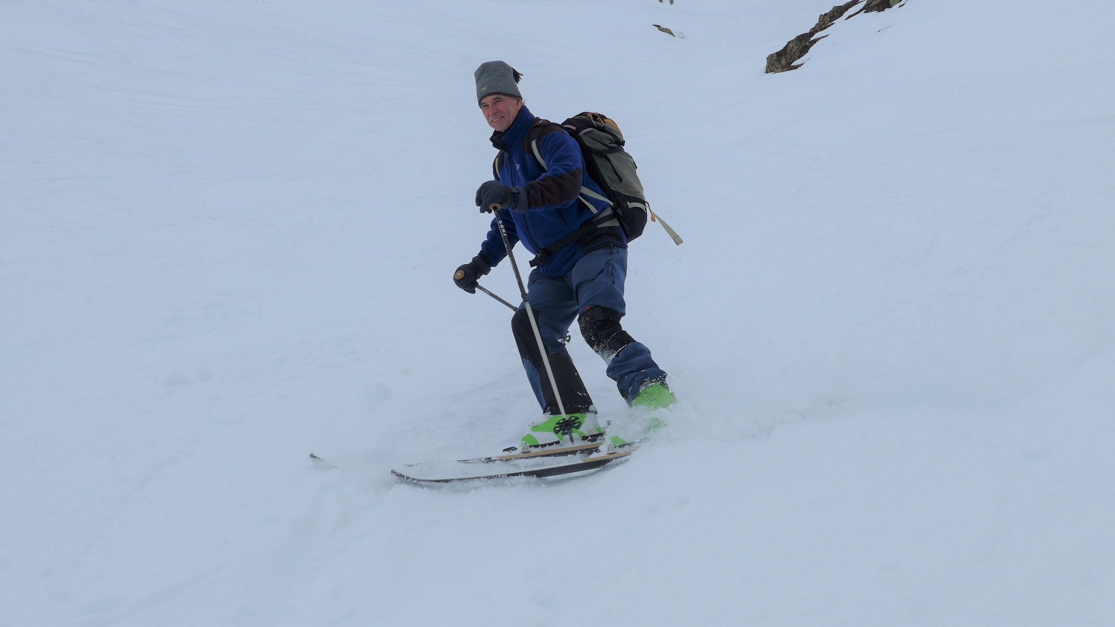 Für "Ortsunkundige" wird dann die Abfahrt rasch zum Abenteuer. Schnell steht man vor steilen Abbrüchen und muss dann wieder zurückfellen. Gut, wenn man gleich eine Portion Humor und die Motivation für zusätzliche Höhenmeter mitbringt. Sonst ist es besser, verlockende Abfahrtsspuren zu ignorieren und im Bereich des Aufstieges wieder talwärts zu schwingen.