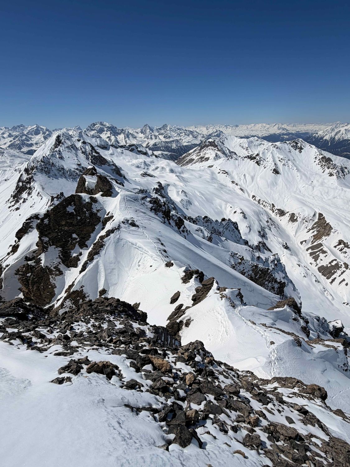 Sertig, Chüealptal, Bergüner Furgga, Ducan Fürggeli, Skigipfel, Gipfelgrat. Gleicher Weg zurück