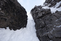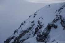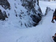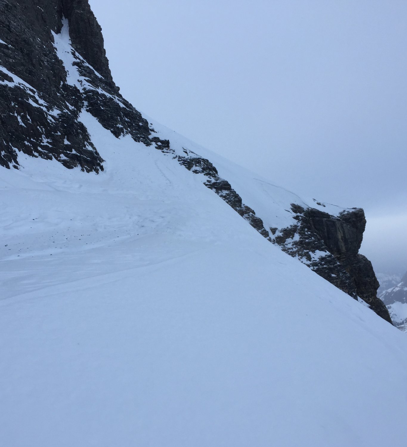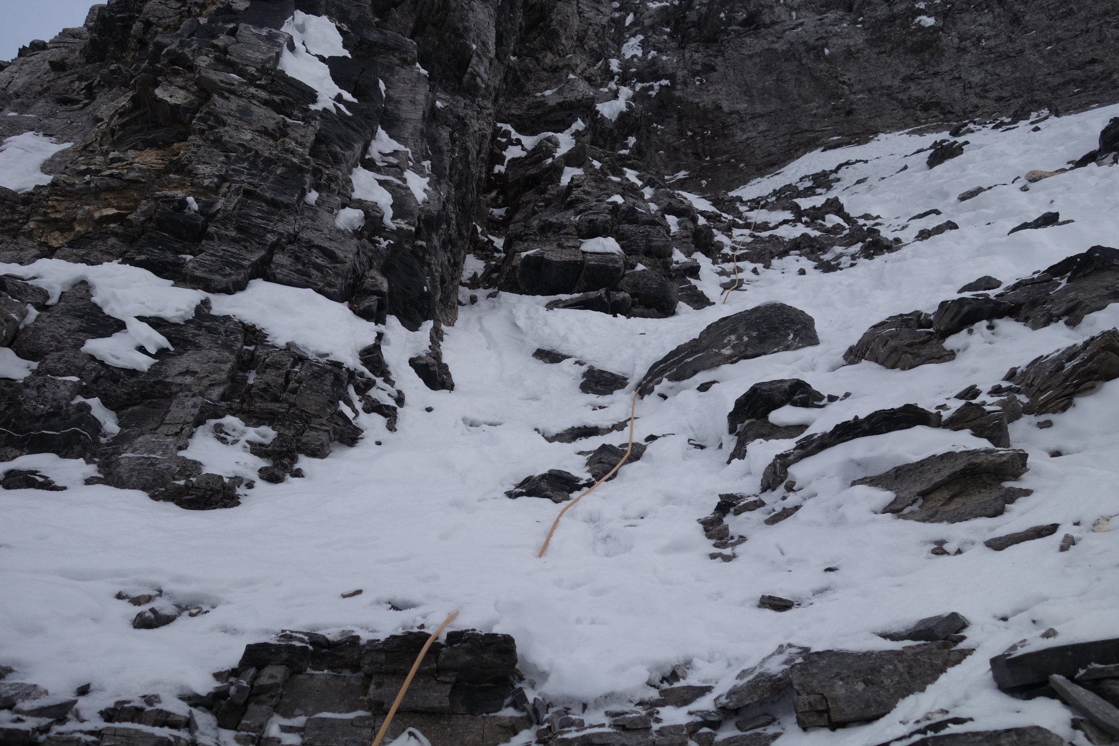 Erste Querung teilweise noch brauchbarer Firn, danach lustige Wühlerei im Mixed Gelände, etwas heikel, da Pickel nicht hält und der Schotter / Fels auch nicht über alle Zweifel erhaben ist.
