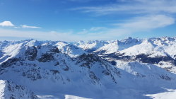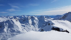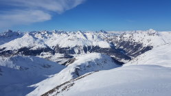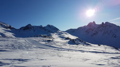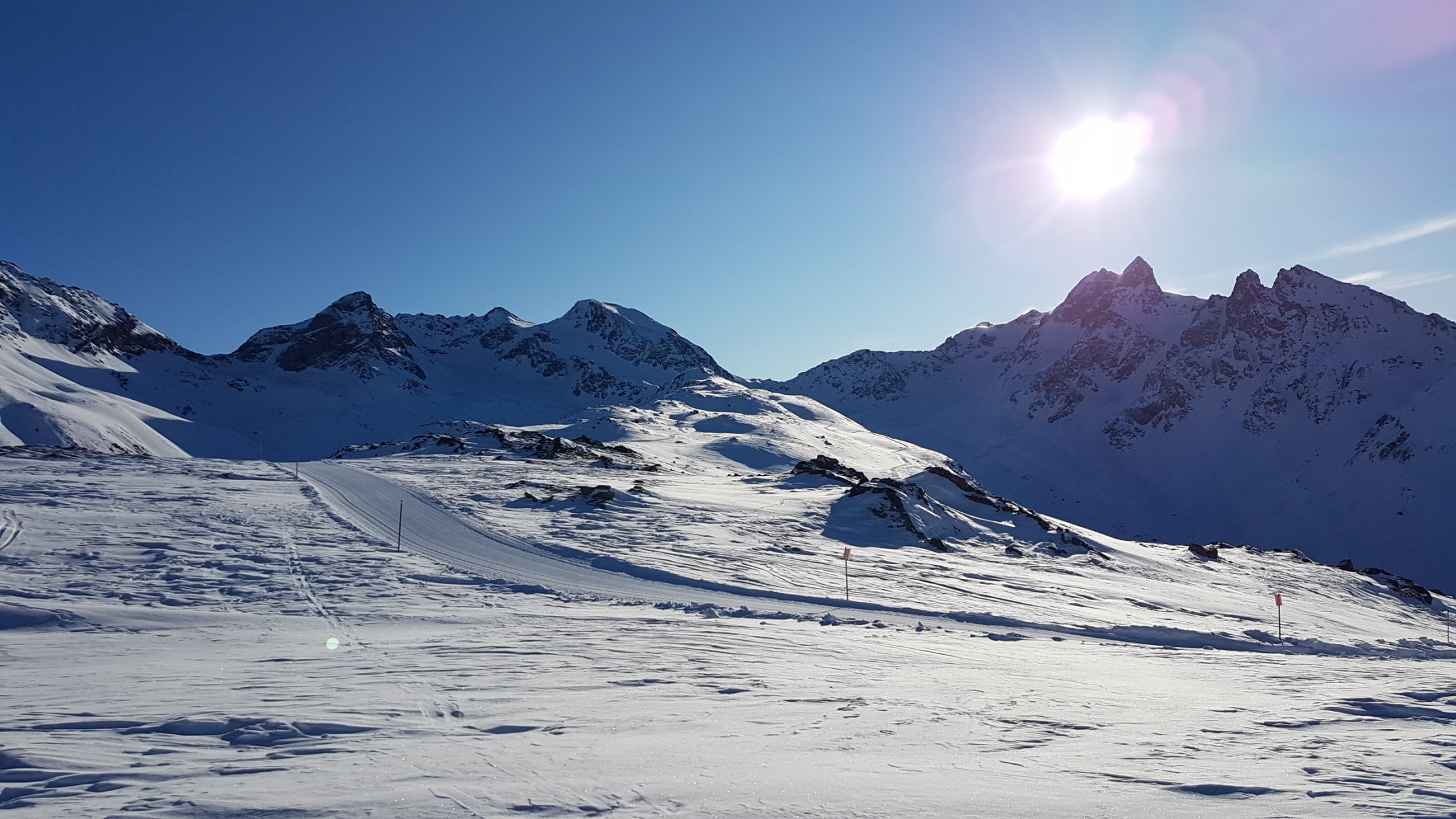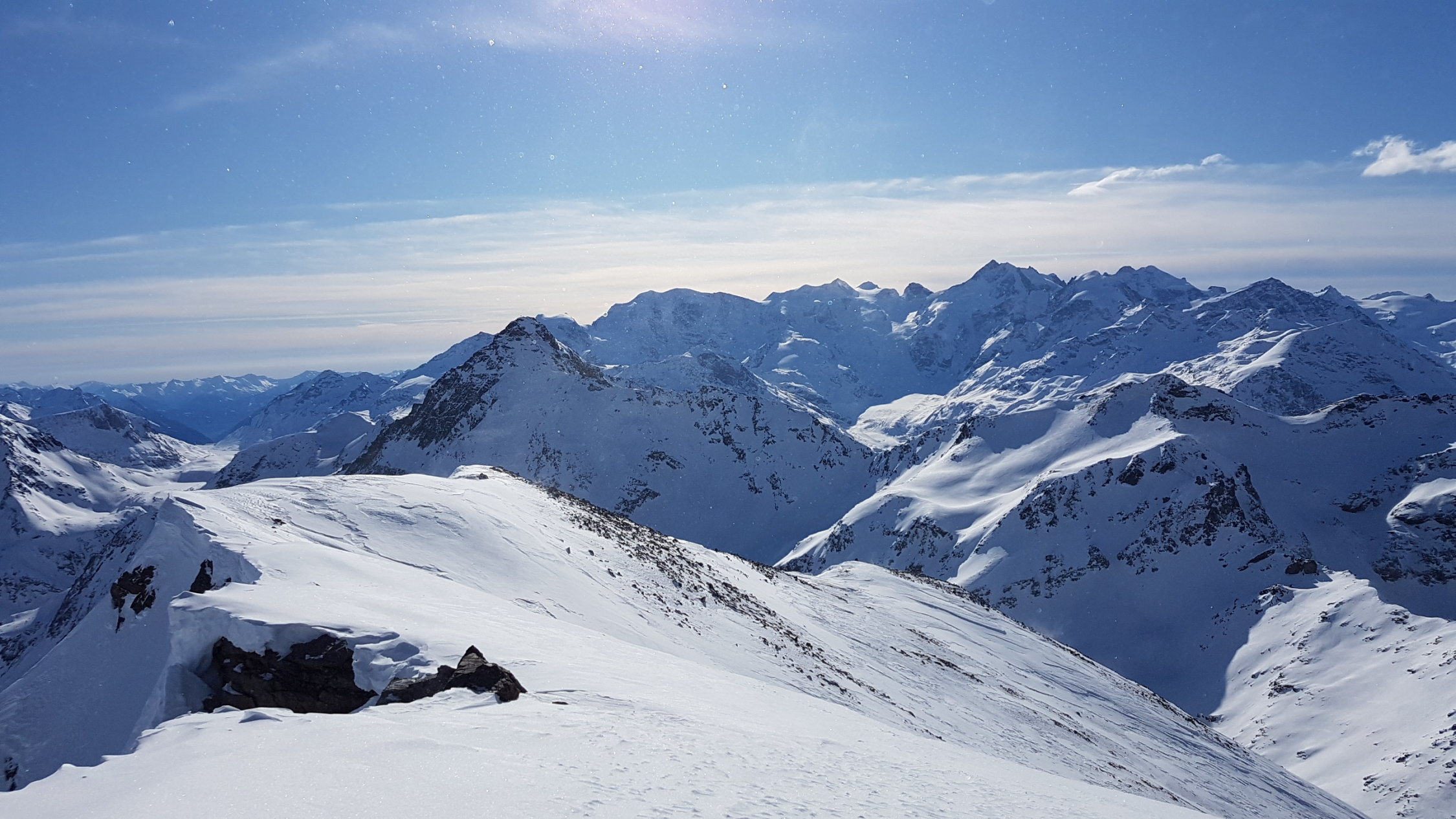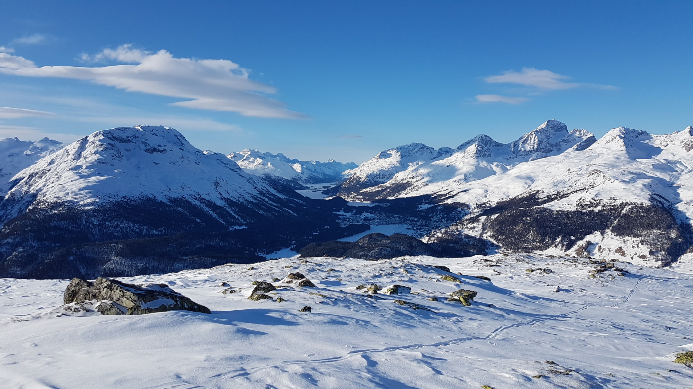 Von Muottas Muragl bis Fuorcla Champagna kein Problem. Danach am ersten steileren Aufschwung zum Teil recht hart. Im Westhang bis zum Sattel ab und zu etwas rutschig, kurz vor dem Sattel sehr hart. Bin noch etwas weiter nach oben gegangen mit den Skis, meist sehr hart. Das letzte Stück zu Fuss auf den Gipfel bei windigen Verhältnissen