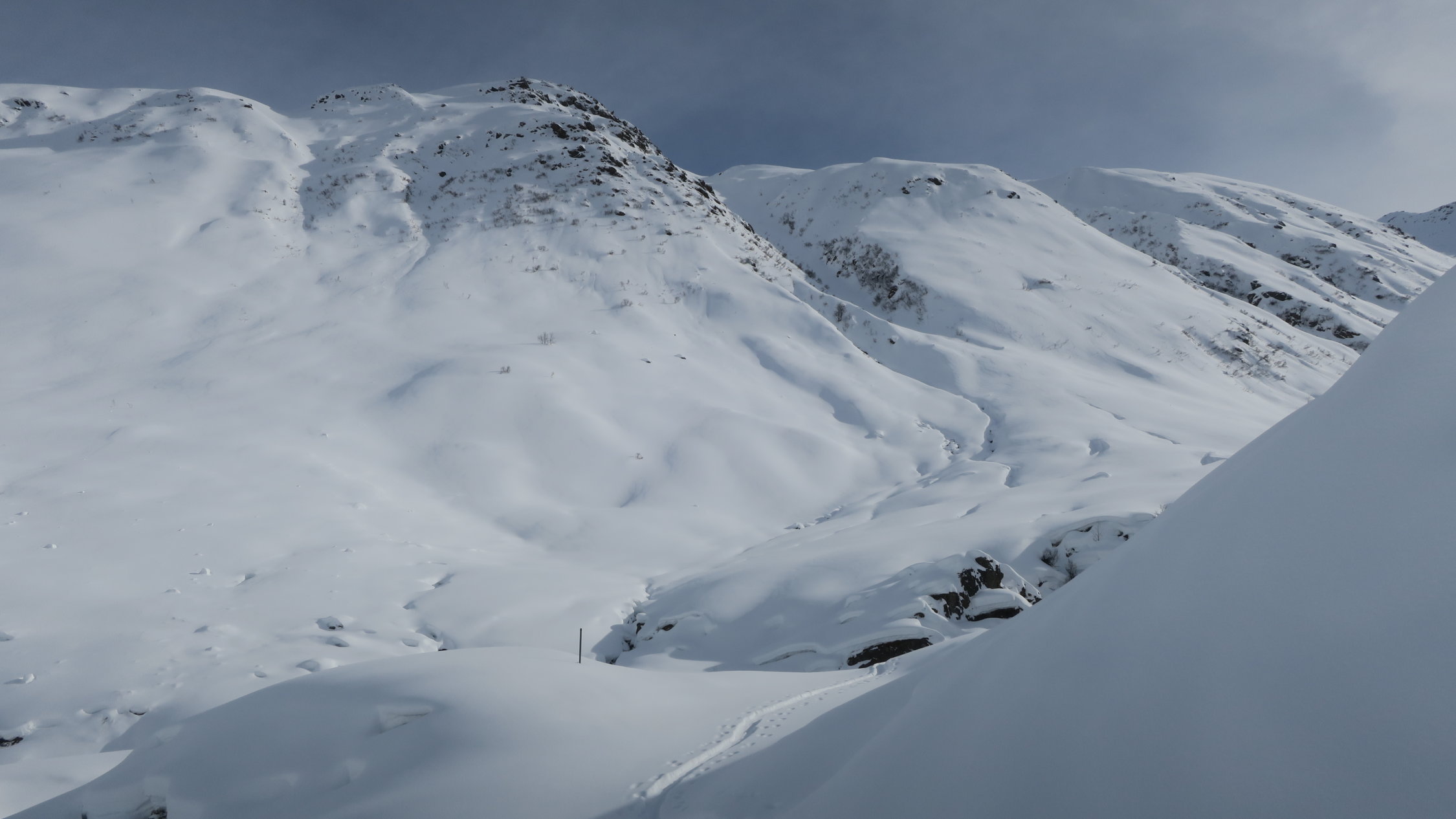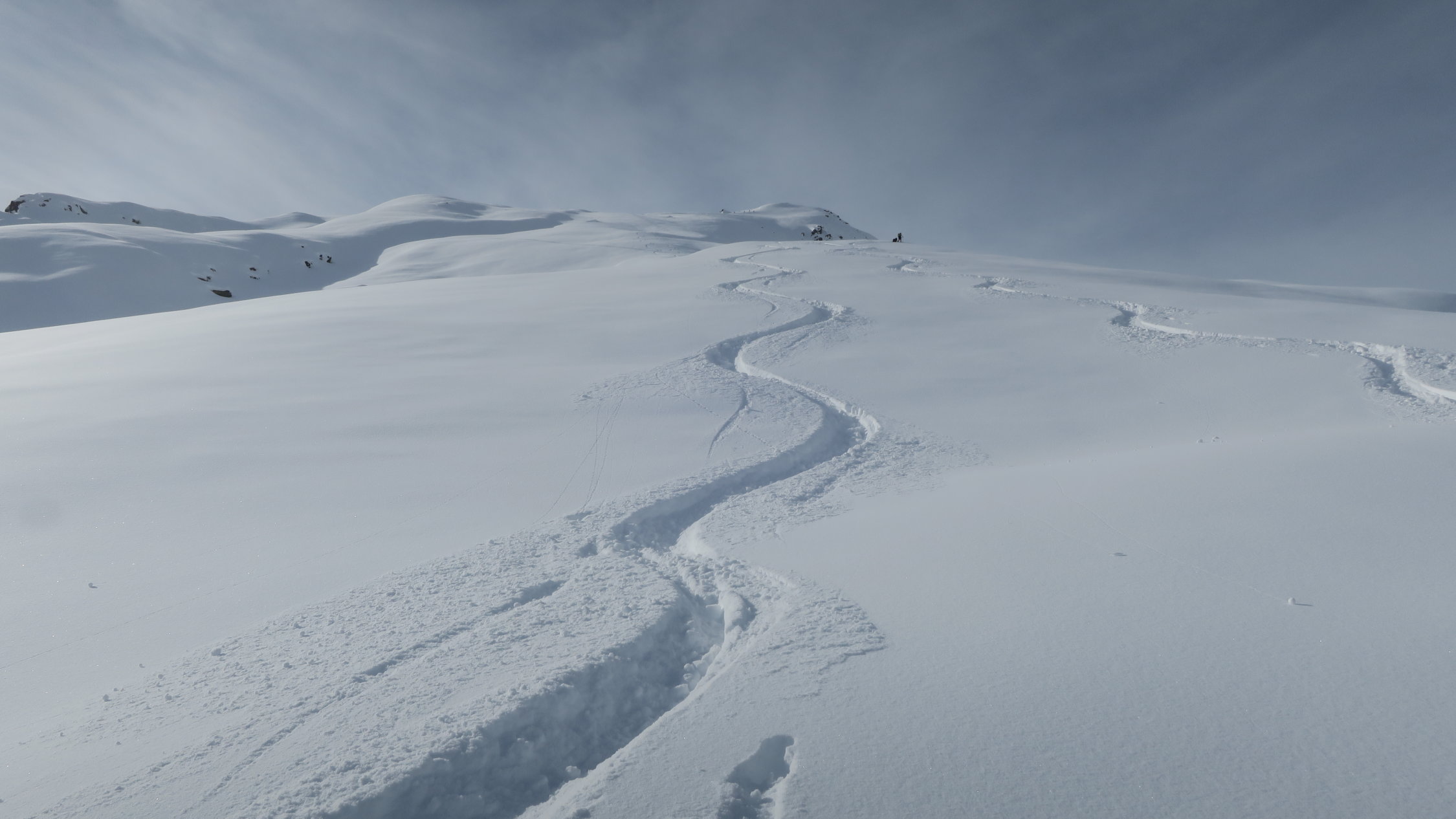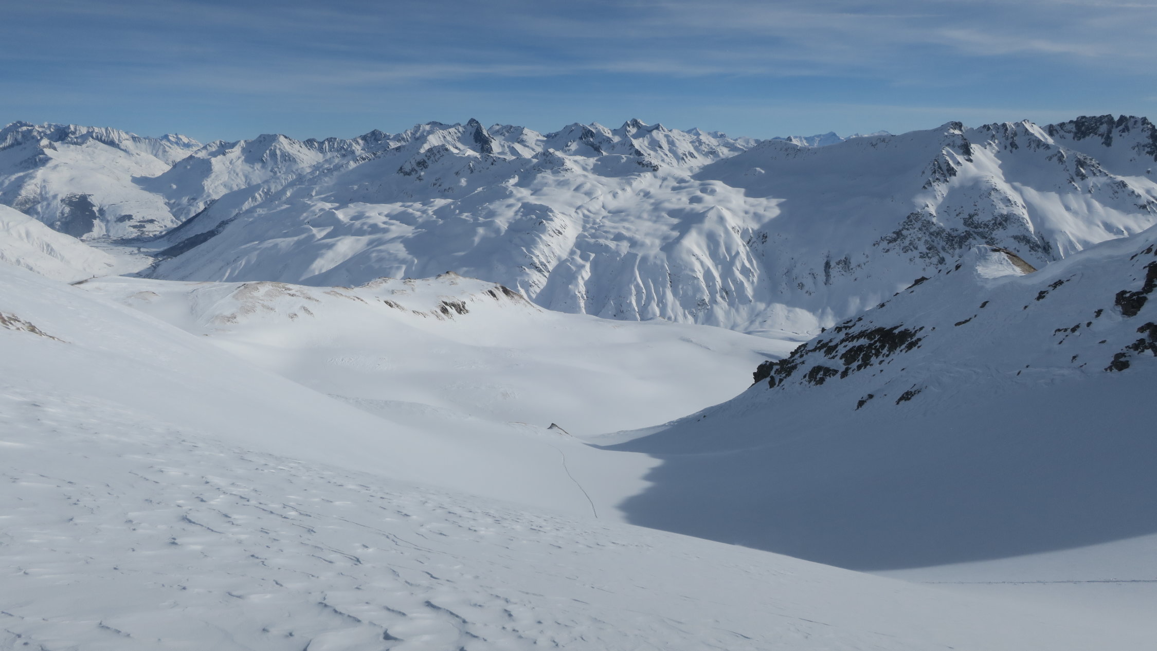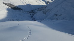 Ganzen Aufstieg gespurt, war wunderbar. Zum Glück war der Schnee nicht bodenlos, so ging's mit den langen Ski ganz flott.
