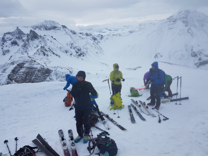Ab Grimmifurggi war die Oberfläche weich und trotz der zunehmend schlechten Sicht fahrbar. Wir haben Bruchharst befürchtet, den gab es wegen der zunehmenden Temperatur nicht. Frühe Abfahrer fanden womöglich sogar eine tragende Fläche vor.