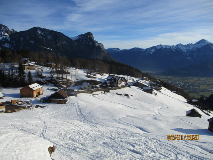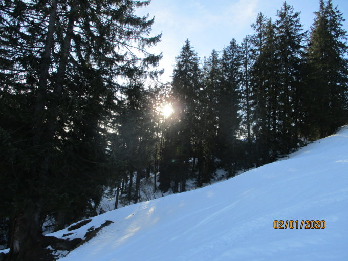 Um 9 Uhr, also anderthalb Stunden nach Peter Huber, machten auch wir uns auf den Weg zum Gipfel. Der gesamte Aufstieg konnte via der präparierten Piste und danach in einer gutgriffigen und tragfähigen Spur bewältigt werden. Im Abstieg dann oben größtenteils durch Bruchharsch, zunehmend abgelöst von schwerem Schnee. Unser Skifahrer Vladi musste kräftig stemmen, während wir oft kraftraubend tief in die häufig nicht mehr tragfähige Schneedecke einsanken. Der Abstieg also mehr schlecht als recht, doch das wunderbar sonnige Wetter mit guten Fernsichten und die bereits erwähnten, günstigen Aufstiegskonditionen verliehen der heutigen Tour durchaus ein "Gut" :-)