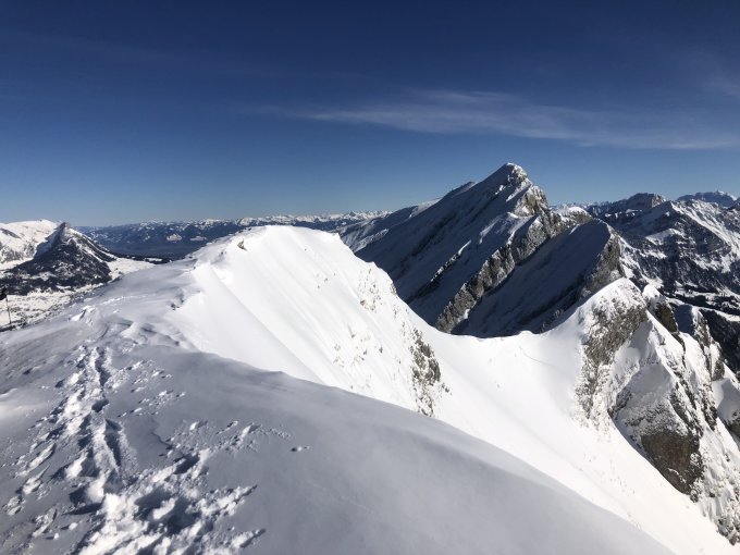 Kompletter Gipfelhang (ab 1750) abgeblasen; viel Eis. Im Aufstieg in Ordnung, letzte 60m nur zu Fuss. In der Abfahrt Slalom zwischen Wiese, Steinen und Eisplatten. Schneeverhätnisse unterhalb der Baugrenze hervorragend.