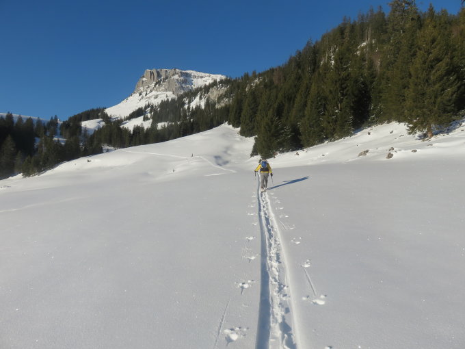 Der Aufstieg war gut, allerdings wenig Schnee. Die Abfahrt muss man über Schlund machen, denn es hat sehr wenig Schnee ab Oberimbergli 1602 bis Chlus 1762.