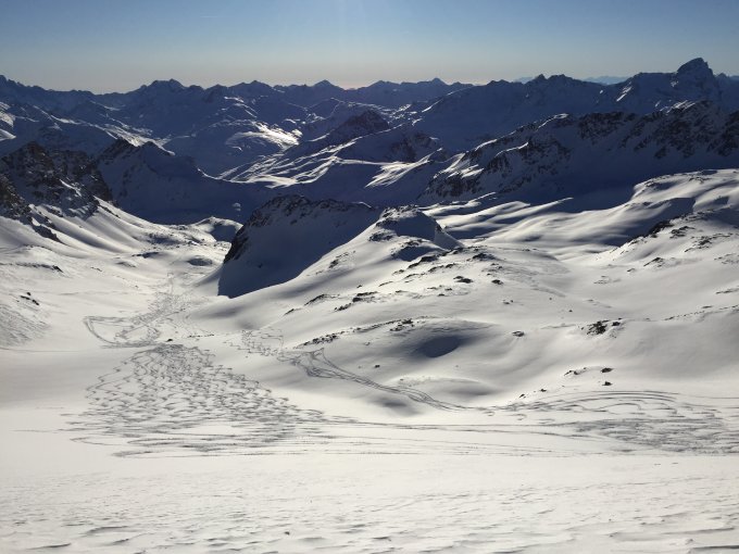 Aufstieg vom Parkplatz über Muot Cotschen und Furcola Alva zum Gipfel. Abfahrt über das Val d'Agnel. An den südexponierten Lagen wird der Schnee schon etwas schwer. Zwischen Muot Cotschen und Furcola Alva fährt/läuft man dann auf einem tragenden Windharschdeckel. Im weiteren Aufstieg zum Surgonda wieder Pulver. Obwohl der Gipfelhang schon recht zerfleddert ist, ist er noch schön zu fahren. Im Val d'Agnel ist der Schnee dann wie Seide...